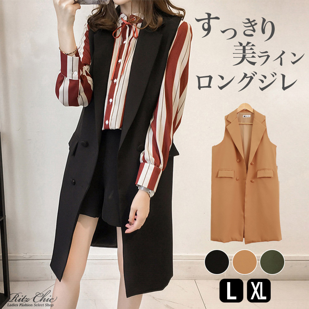 トレンチ ジレ ベスト ロング レディース 秋冬 ベスト 韓国 きれいめ 大人 カジュアル 通勤 ビジネス オフィス 上品 無地 シンプル 大人可愛い 大人女子