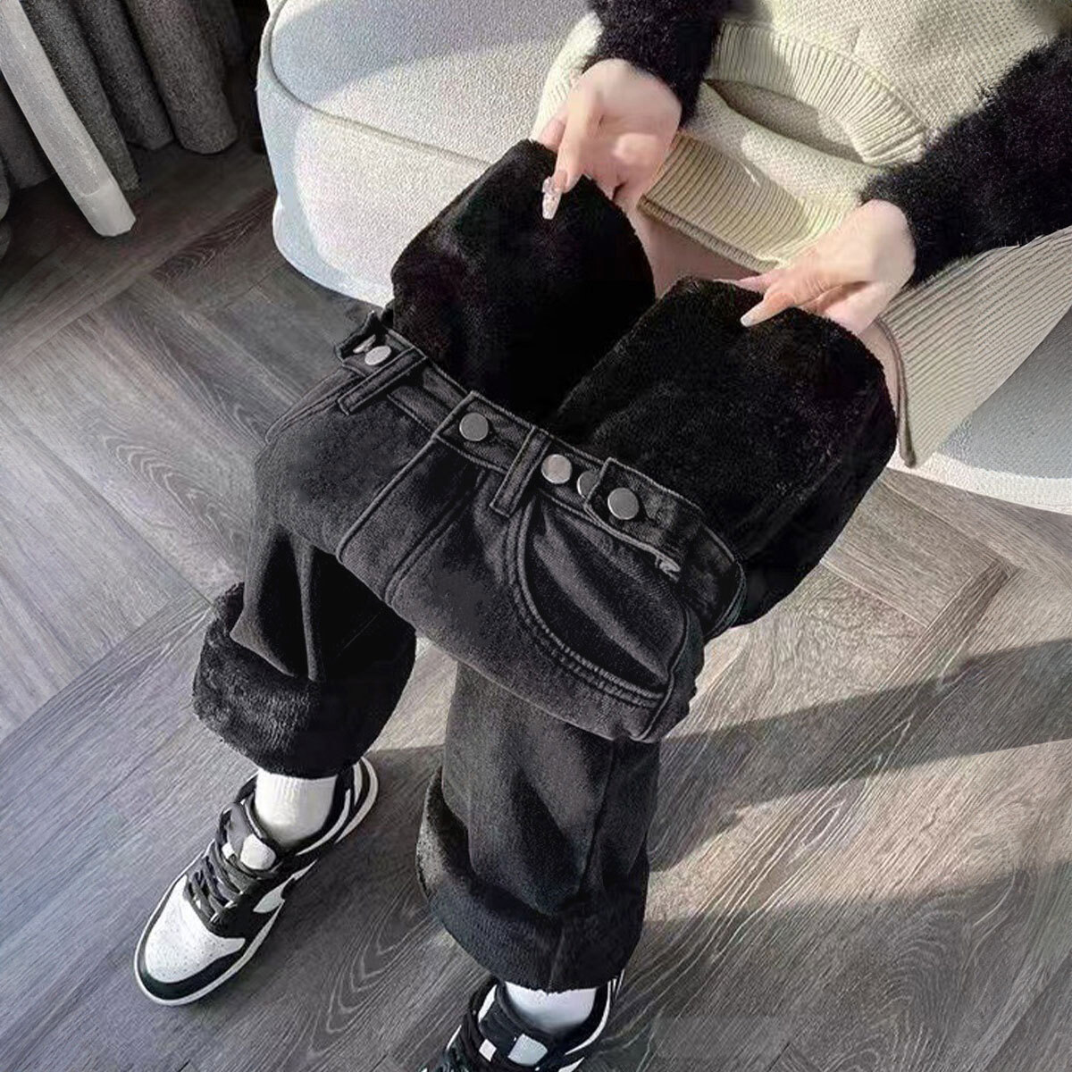 暖かく柔らかな裏起毛素材を使用し、寒い冬にも暖かく快適な穿き心地を与えてくれるストレートのデニムパンツです。