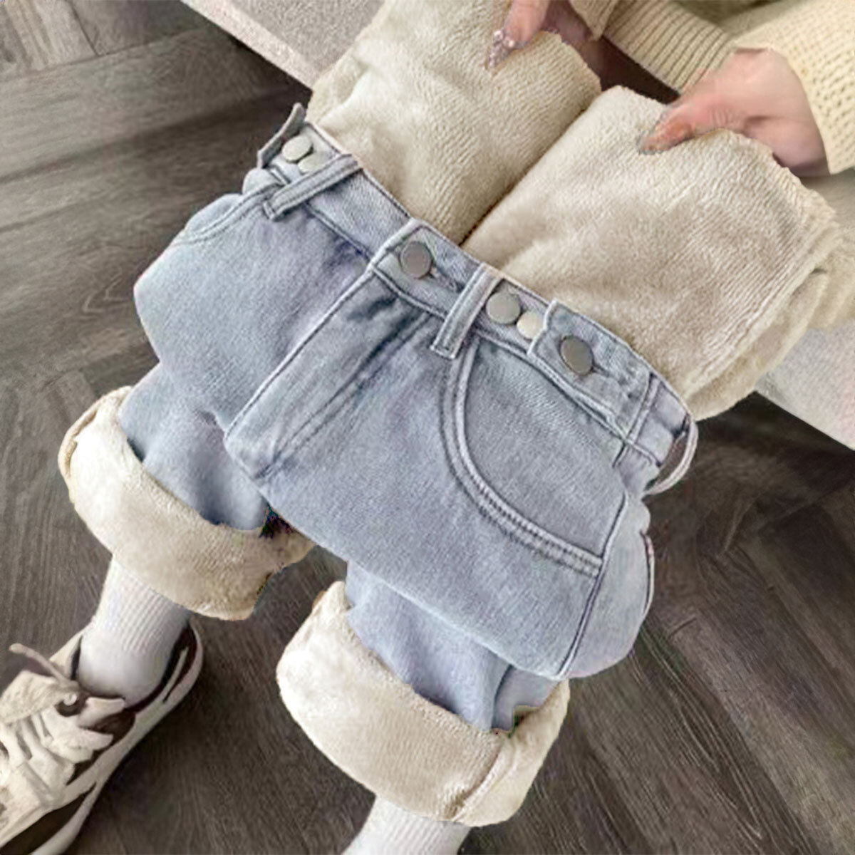 デニム パンツ 裏起毛 ストレート ジーンズ レディース 秋冬 防寒 保温 暖かい 韓国 大人 カジュアル おしゃれ ゆったり フリースデニム 体型カバー 裏ボアジーンズ 大人可愛い 大人女子