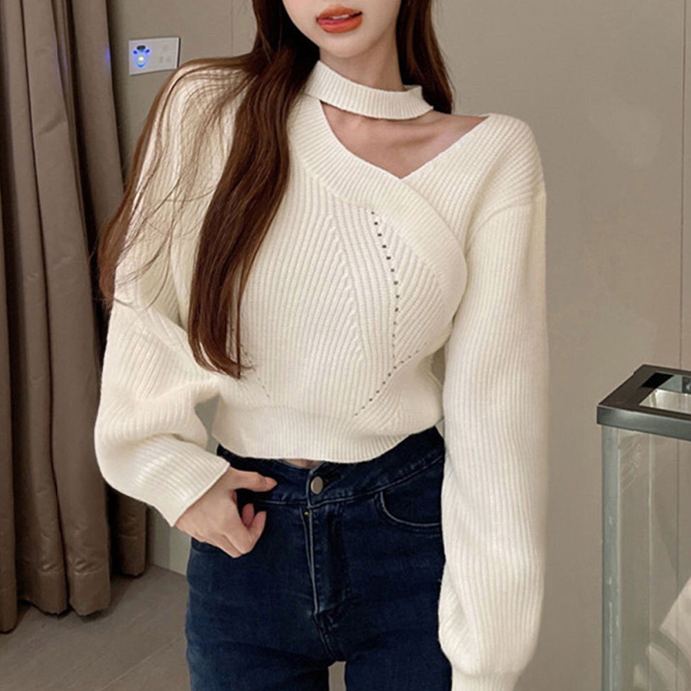 ホルターネックデザインで、肌見せ効果がありつつも大人可愛いスタイルを演出し、カジュアルな中にも洗練された雰囲気を醸し出します。