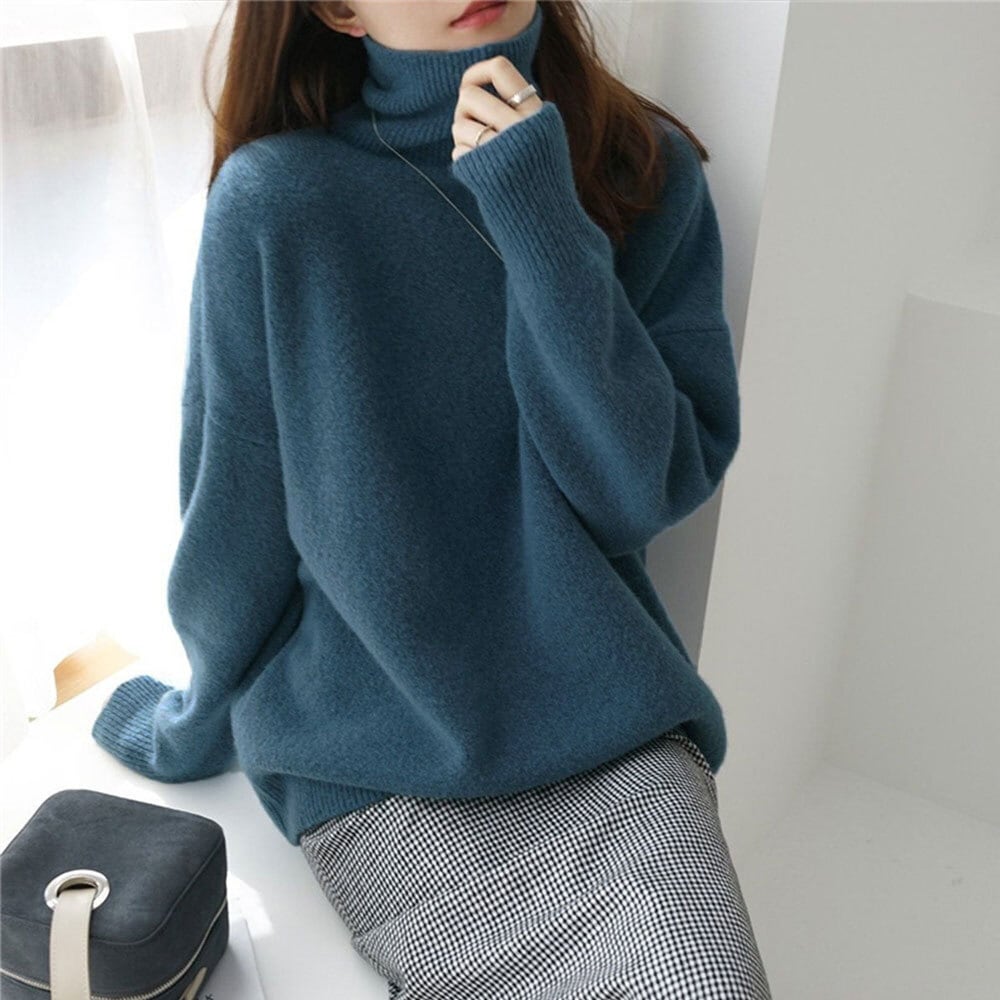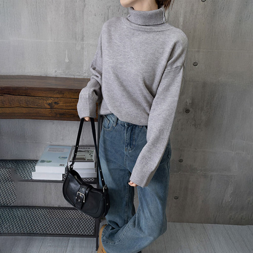 タートルネックで首元まで暖かく、シンプルながらもきれいめなデザインで、大人のこなれた印象を演出してくれるニットセーターです。