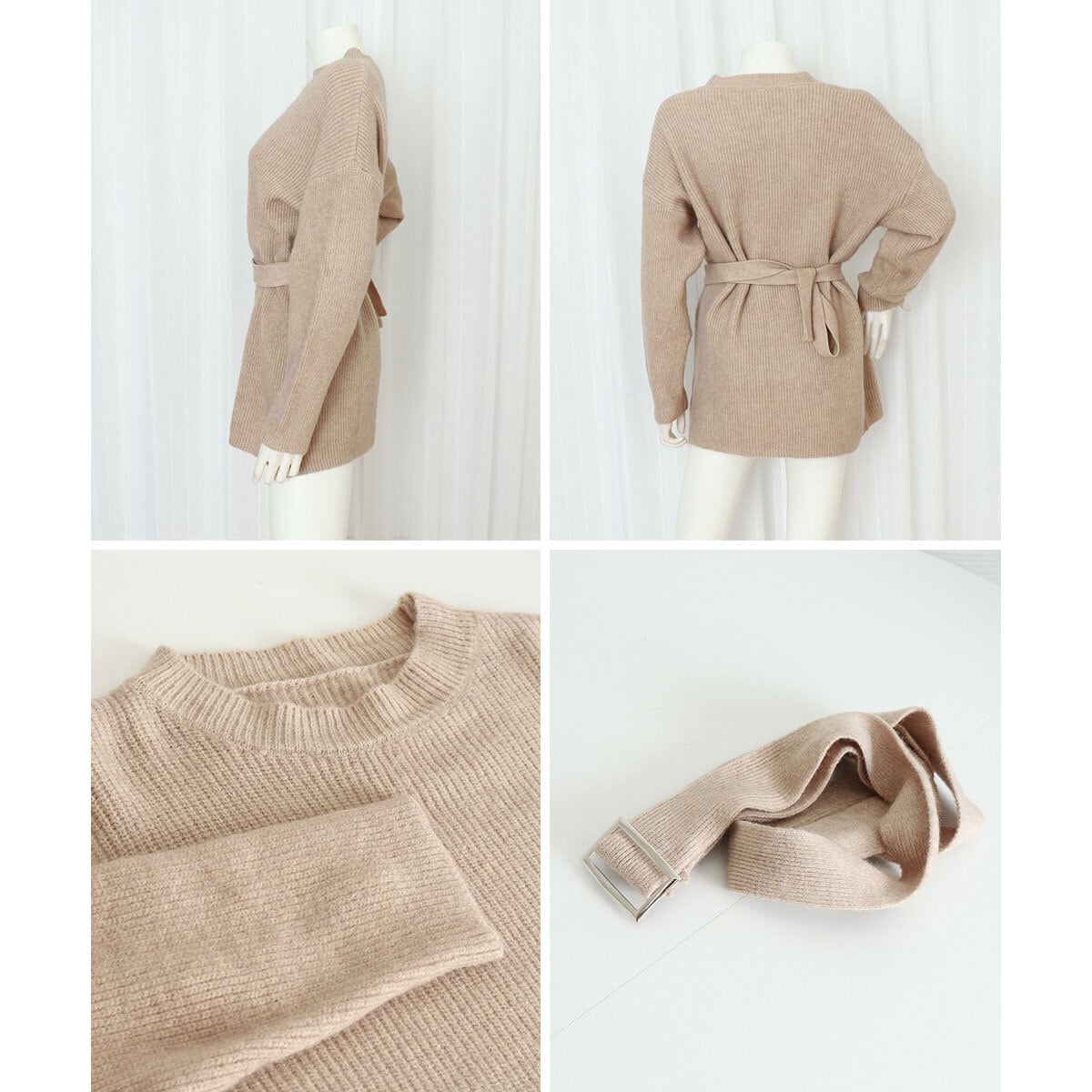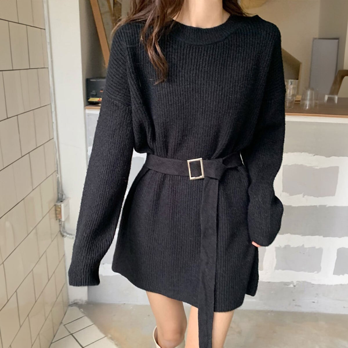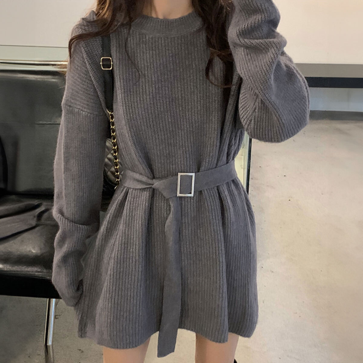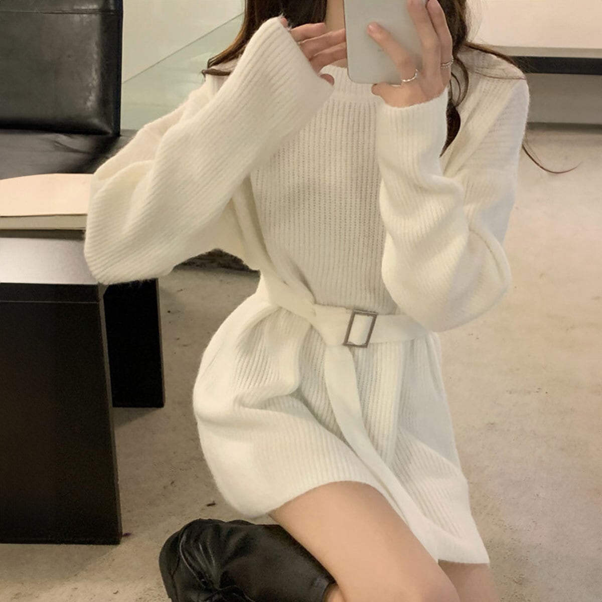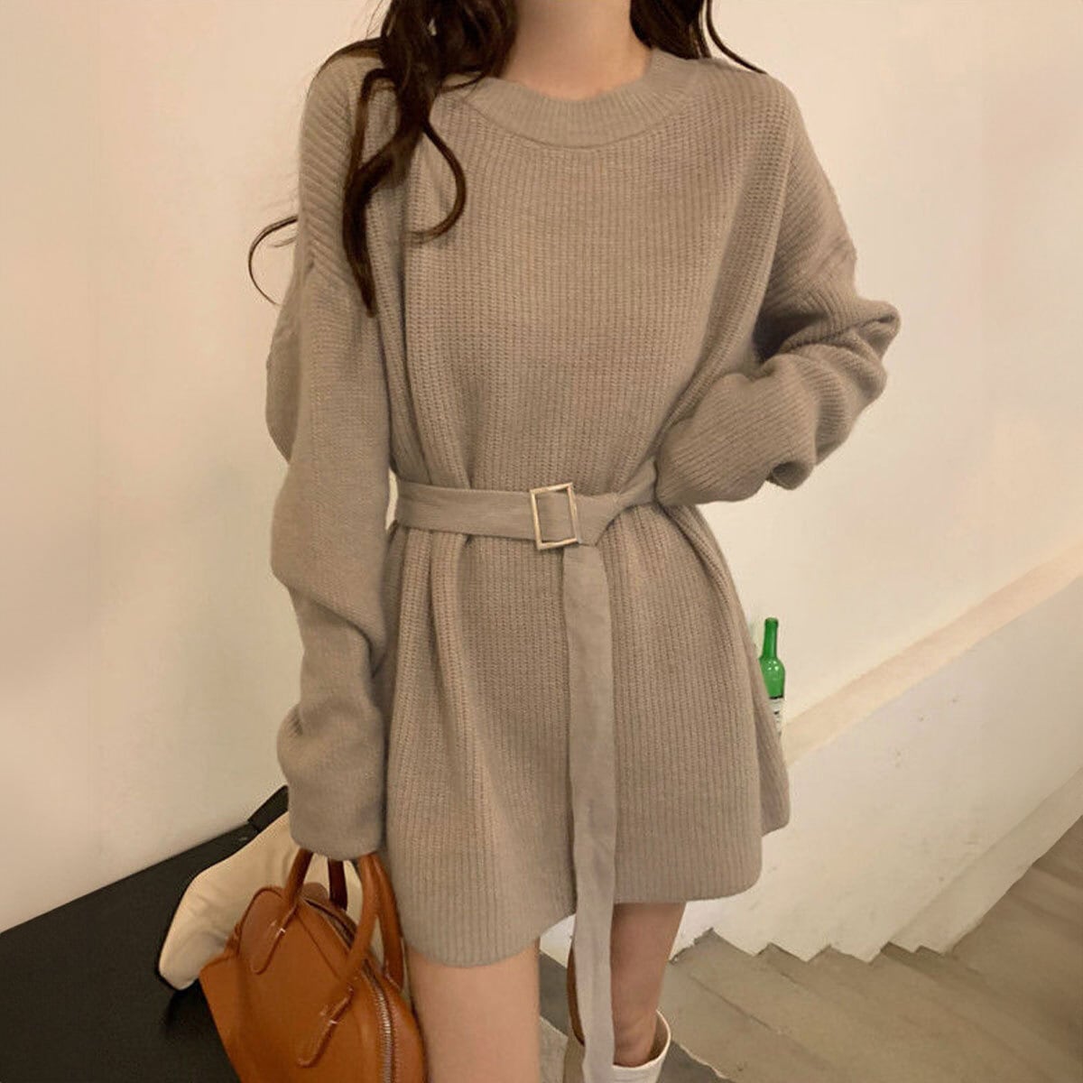 ミニワンピース ニット 長袖 レディース 秋冬 韓国 ワンピース きれいめ 大人 かわいい おしゃれ カジュアル ウエストマーク ベルト付き ゆったり 体型カバー 無地 シンプル 大人可愛い 大人女子