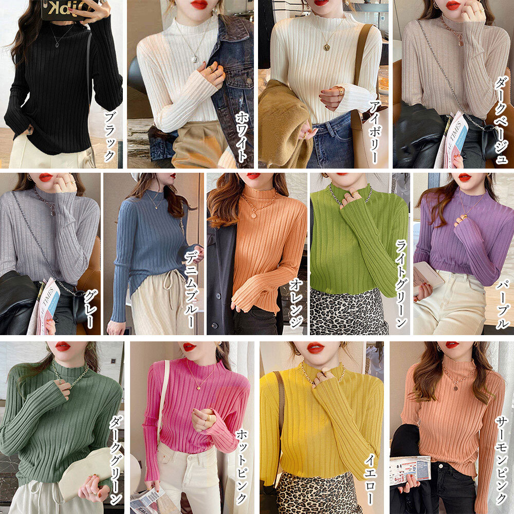 プチハイネック リブニット トップス 長袖 レディース 秋冬 きれいめ 大人 かわいい おしゃれ カジュアル シンプル ビジネス オフィス 大人可愛い 大人女子