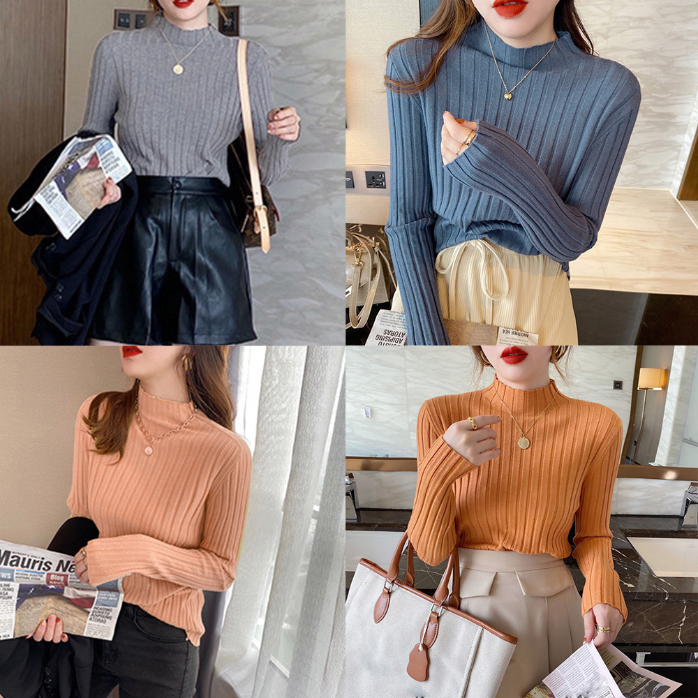 柔らかく伸縮性のあるリブニット生地で着心地もよく、プチハイネックデザインだから首元まで暖かい大人女子にオススメのリブニットトップスです。