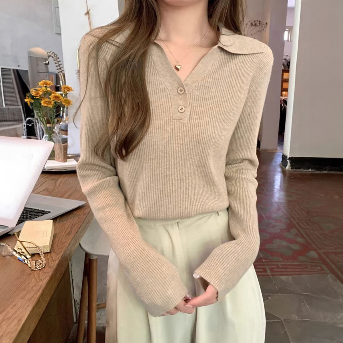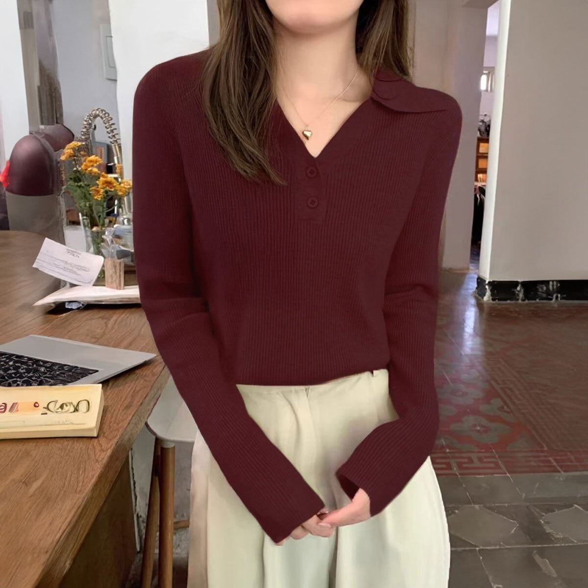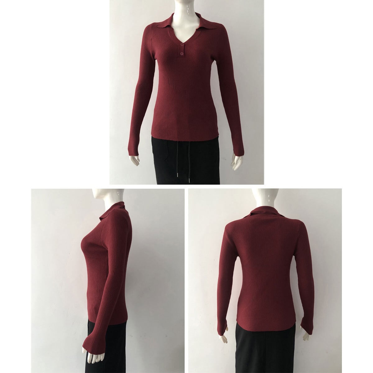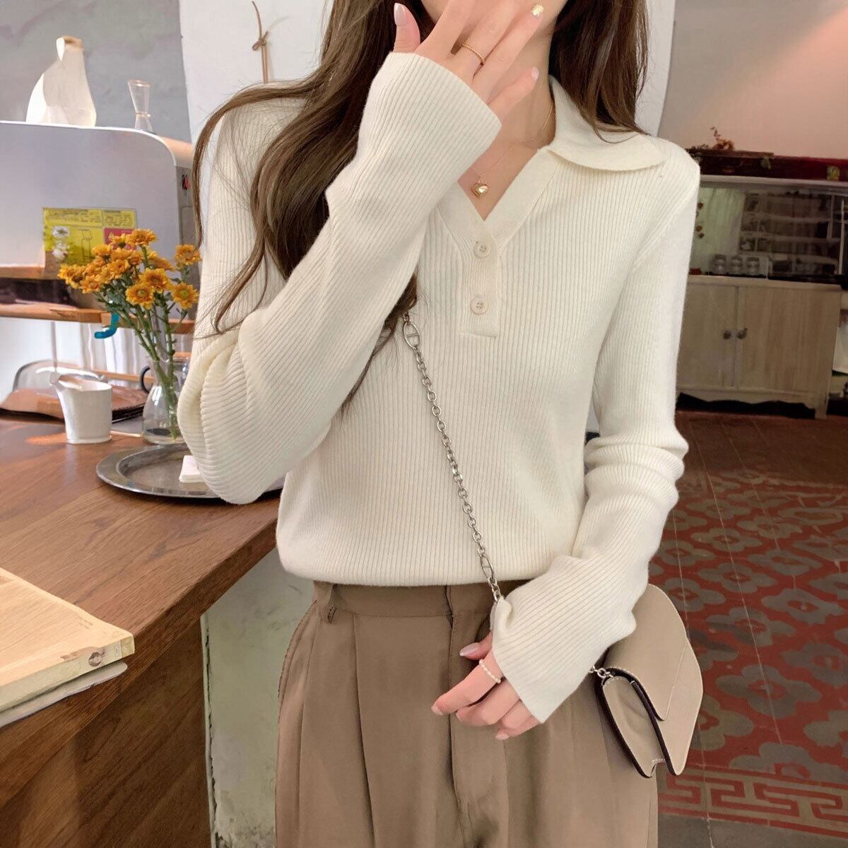 ポロ ニット 長袖 トップス レディース 春秋 韓国 リブニット きれいめ 大人 シンプル カジュアル オフィス ビジネス ニットセーター Vネック 大人可愛い 大人女子