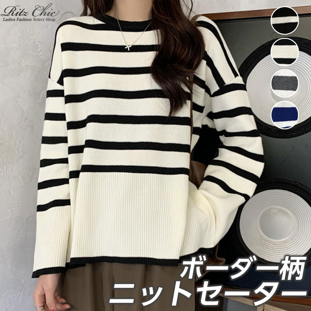 ボーダー ニット セーター レディース 秋冬 韓国 スリット 大人 カジュアル きれいめ おしゃれ ゆったり 体型カバー ドロップショルダー 長袖 トップス 大人可愛い 大人女子