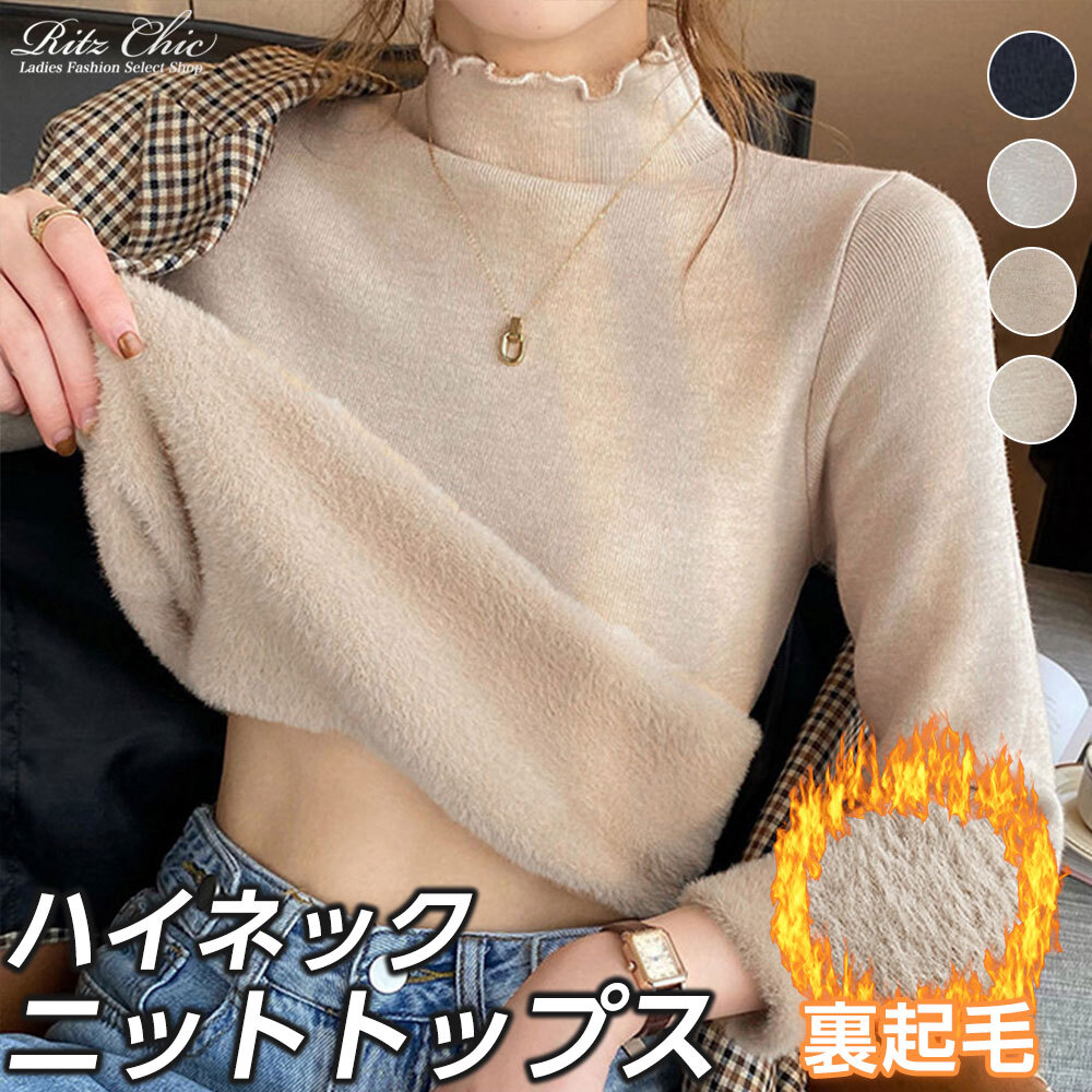 ハイネック ニット 裏起毛 レディース 秋冬 韓国 きれいめ シンプル 大人 カジュアル 暖かい 防寒 保温 厚手 トップス インナー 大人可愛い 大人女子