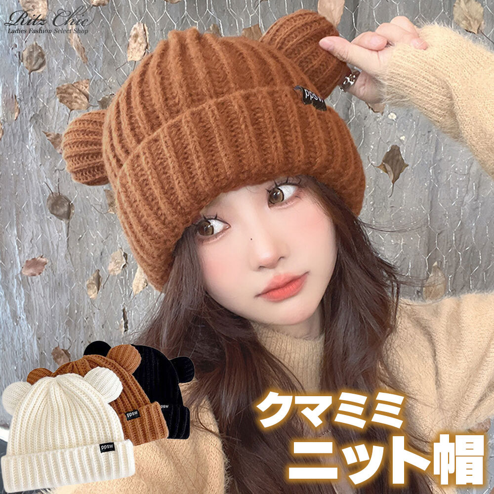 クマミミ ニット帽 レディース 秋冬 韓国 帽子 熊耳 防寒 保温 大人 かわいい アニマル帽 おしゃれ フェミニン ガーリー 耳付き アウトドア 大人可愛い 大人女子
