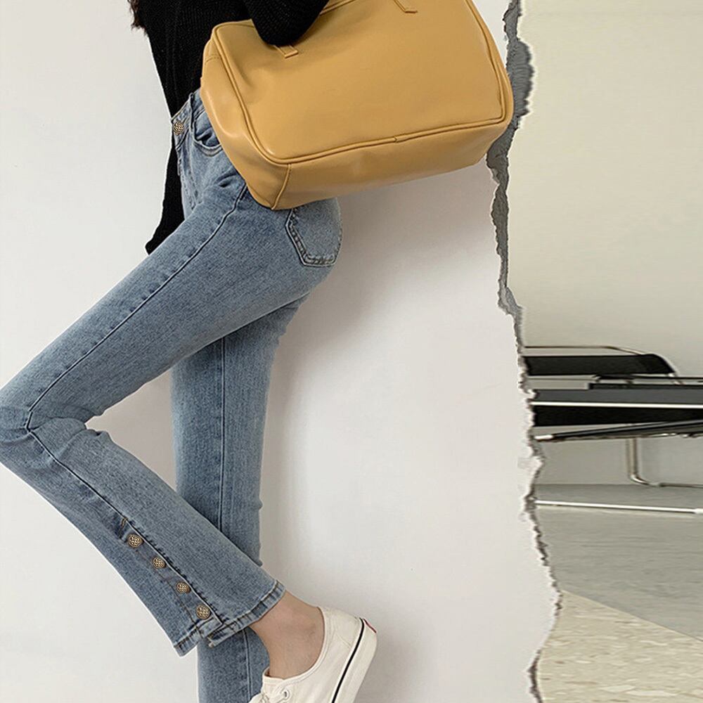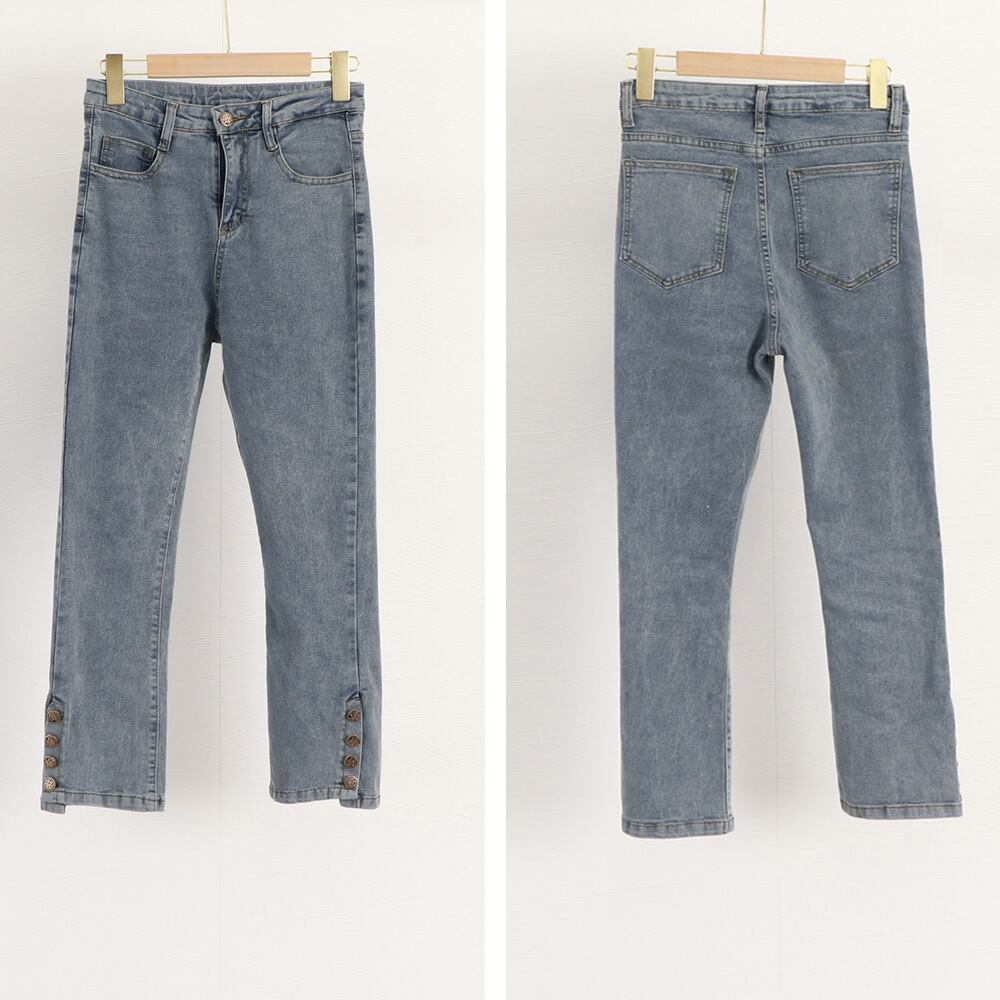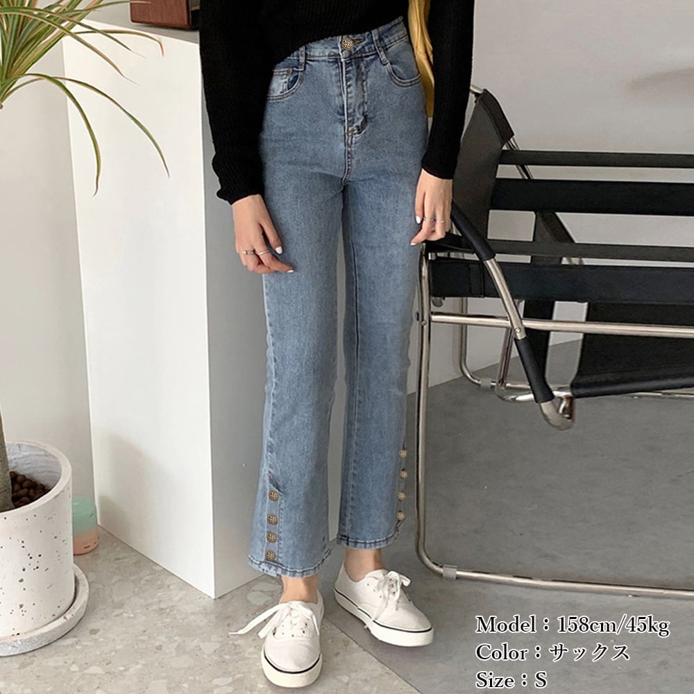 アンクル丈のセミフレアデザインで、足首に女性らしい抜け感を与えてくれるスキニーデニムパンツです。