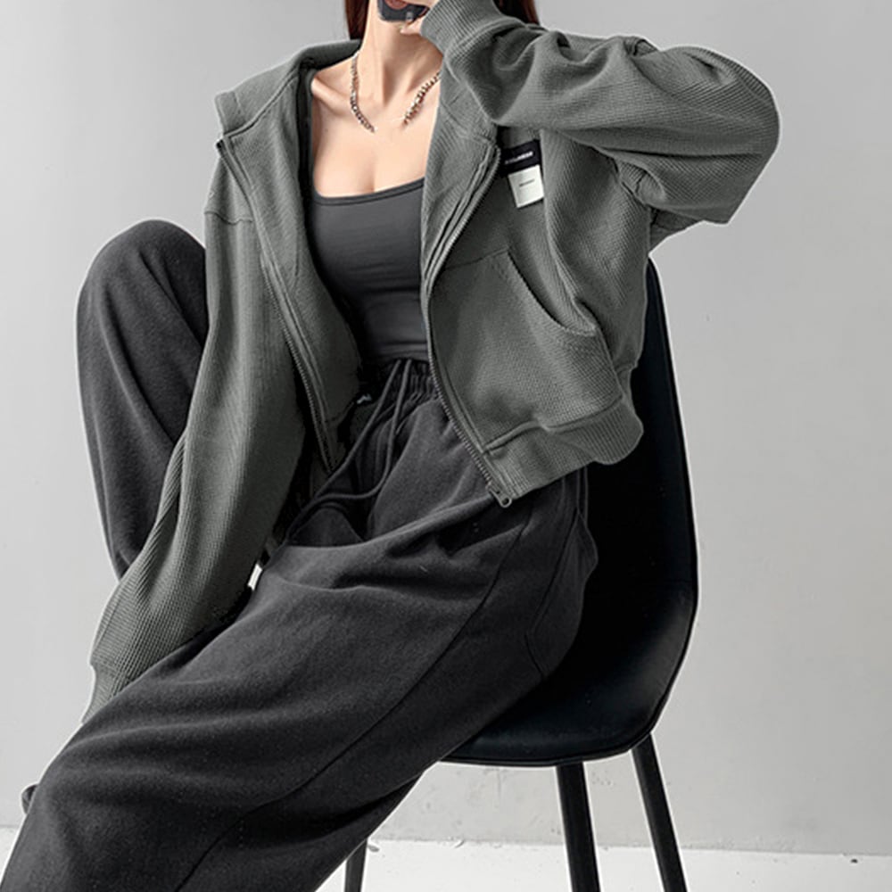トレンドのクロップド丈でストリート感たっぷりのジップアップパーカーです。