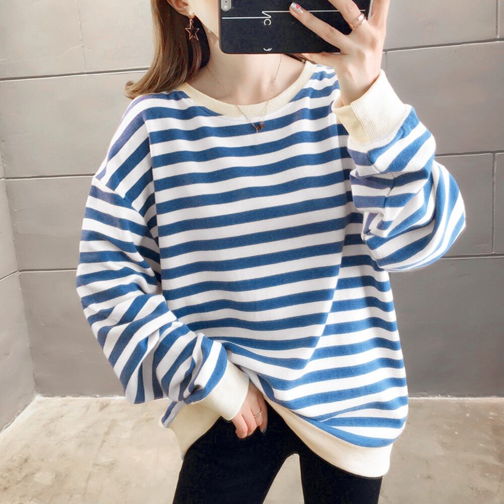 ボーダー スウェット トップス レディース 春秋 かわいい きれいめ 大人 カジュアル おしゃれ 長袖 オーバーサイズ 大人可愛い 大人女子