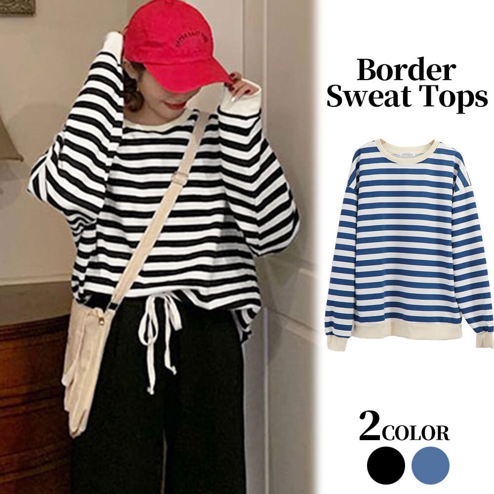 ボーダー柄の配色デザインでカジュアル感が抜群のスウェットトップスです。