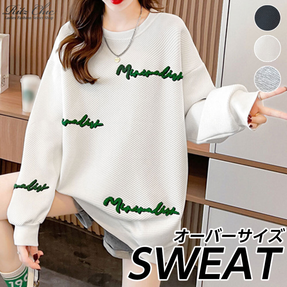 スウェット トレーナー レディース 春秋 韓国 オーバーサイズ ゆったり 大人 カジュアル ストリート 原宿系 アメカジ 刺繍 トップス ビッグT チュニック 大人可愛い 大人女子