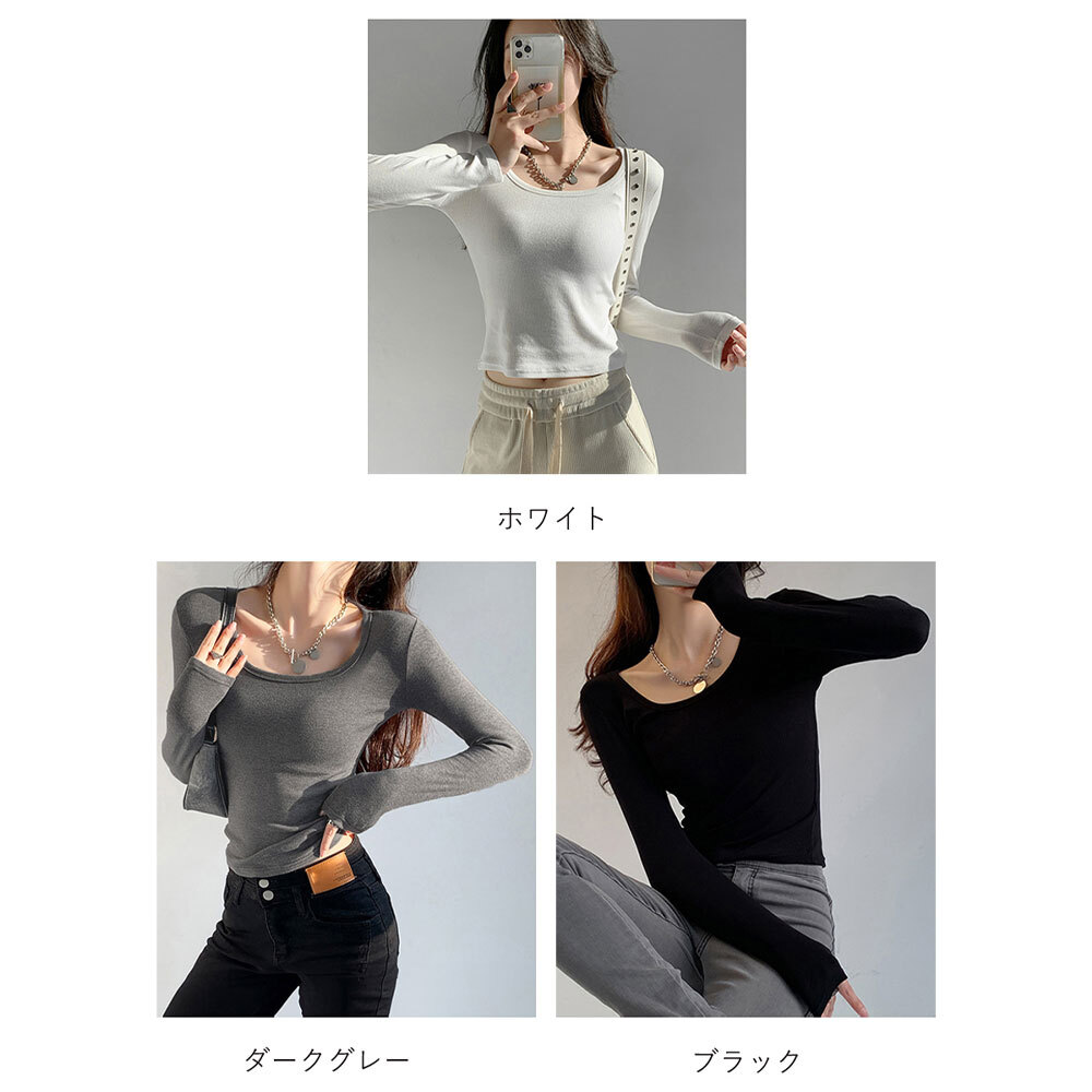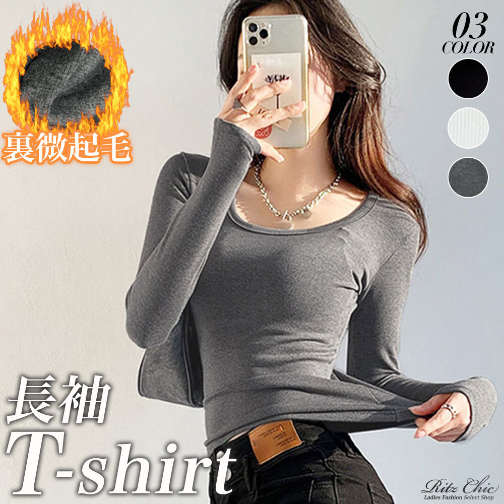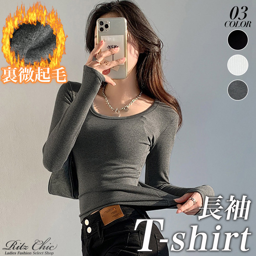 長袖 Tシャツ レディース 春秋冬 韓国 ショート丈 Uネック 裏微起毛 トップス シンプル 大人 カジュアル インナー ストレッチ 大人可愛い 大人女子