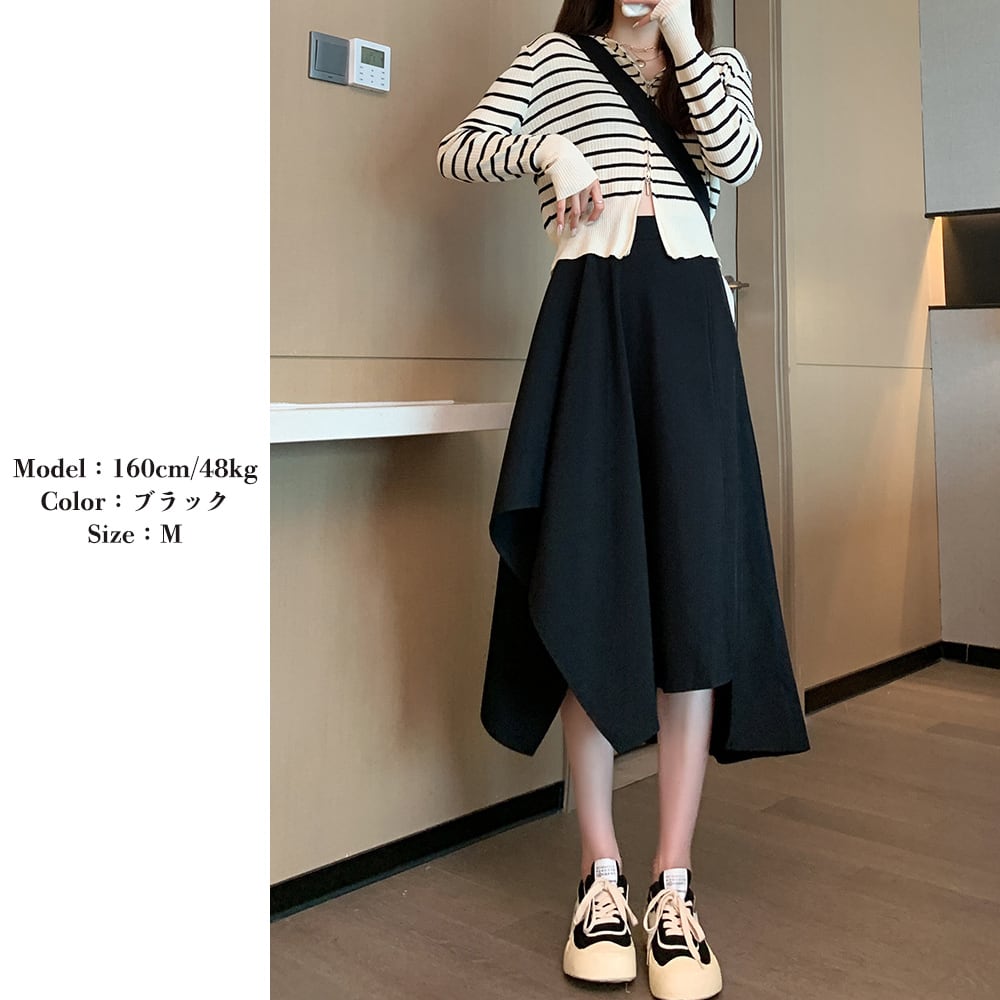 アシンメトリー フレア スカート レディース 春夏秋 きれいめ おしゃれ 大人 かわいい カジュアル レトロ プリーツ 大人可愛い 大人女子