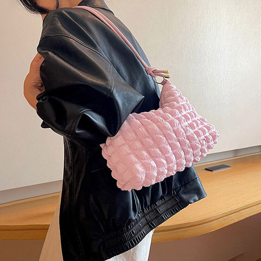 ぽこぽことした凹凸感がお洒落で可愛い、トレンド感抜群のポップコーンバッグです。