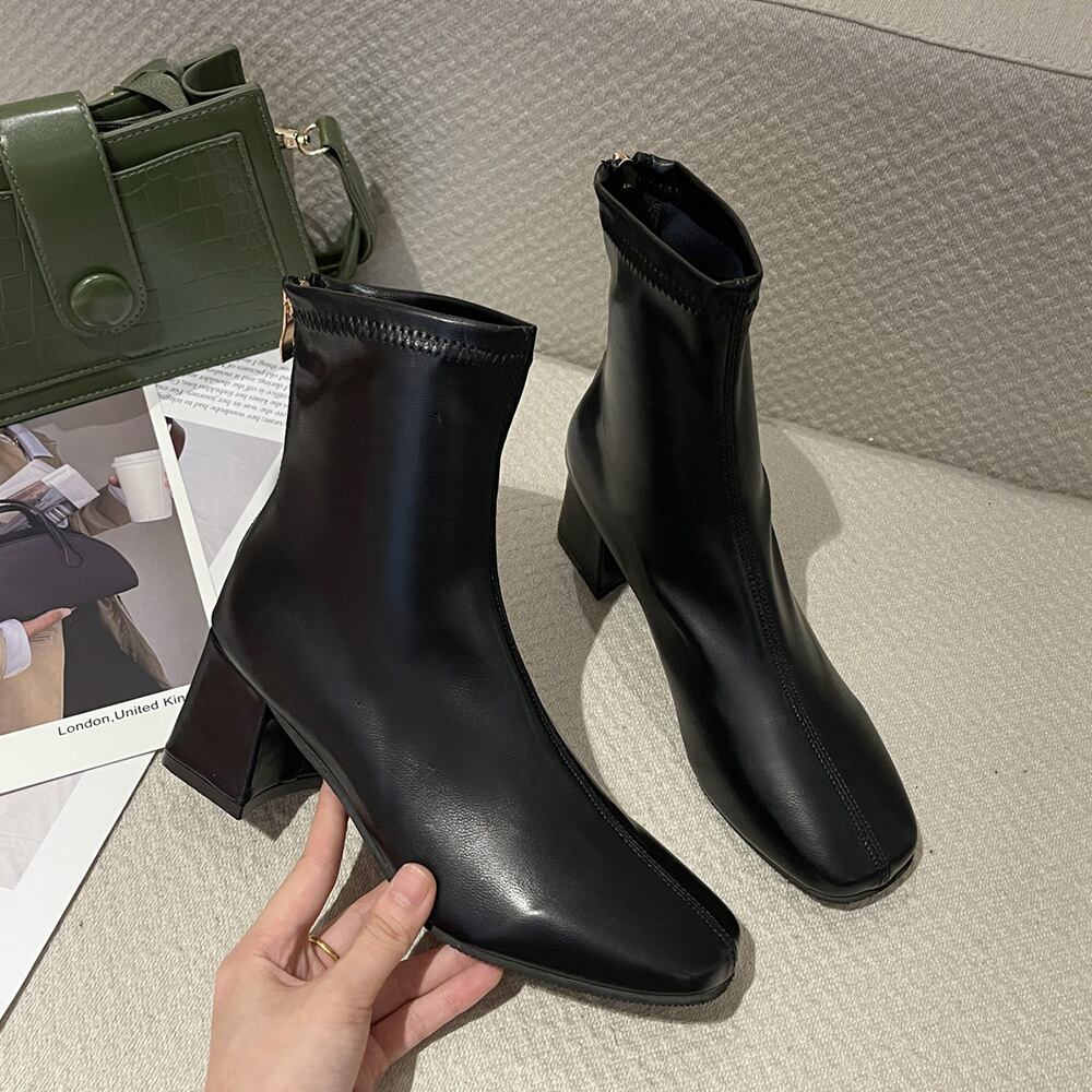 スクエアトゥ ショートブーツ レディース 春秋冬 きれいめ おしゃれ 大人 かわいい 通勤 ビジネス オフィス カジュアル 上品 歩きやすい 大人可愛い 大人女子