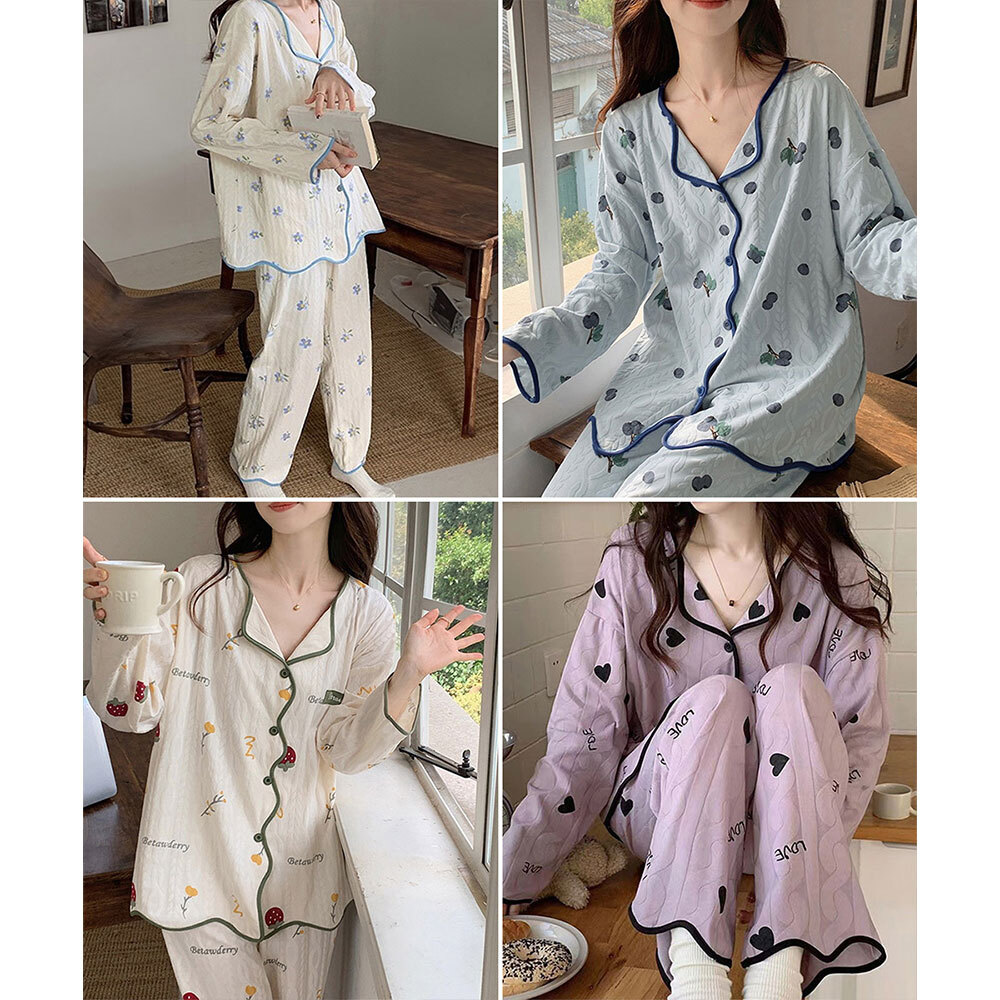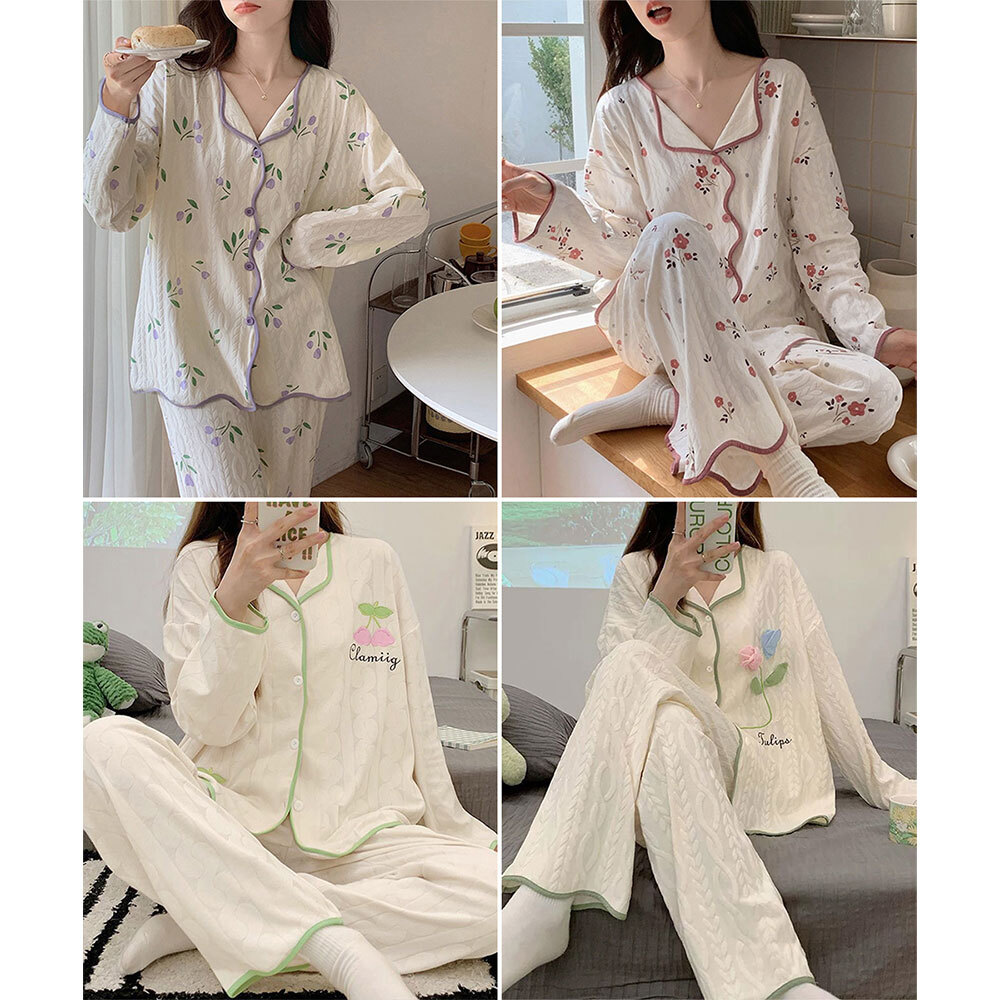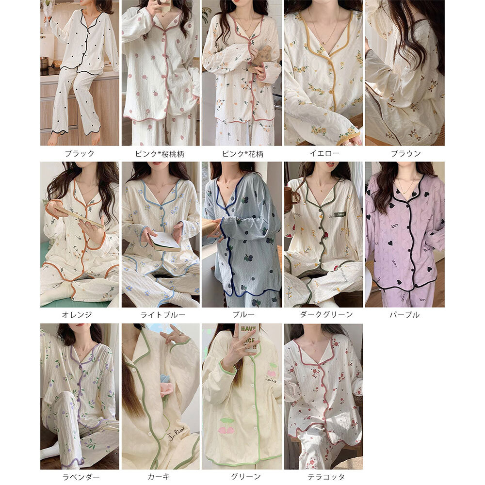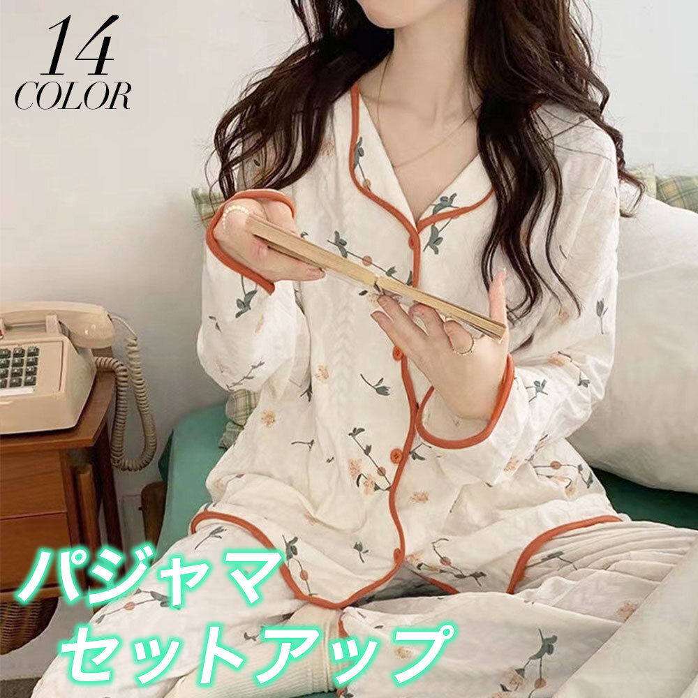 総柄 パジャマ セットアップ レディース 春秋冬 韓国 ルームウェア 部屋着 おしゃれ フェミニン 大人 かわいい ガーリー きれいめ 大人可愛い 大人女子