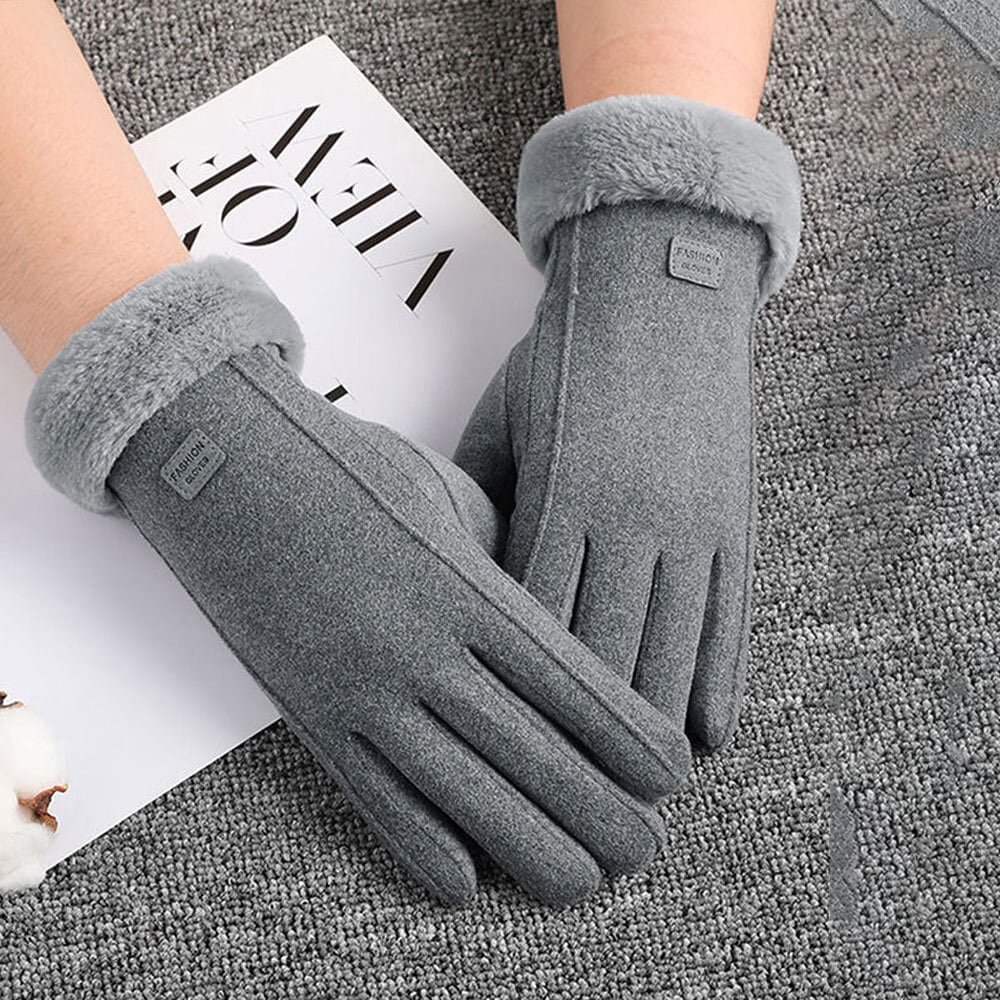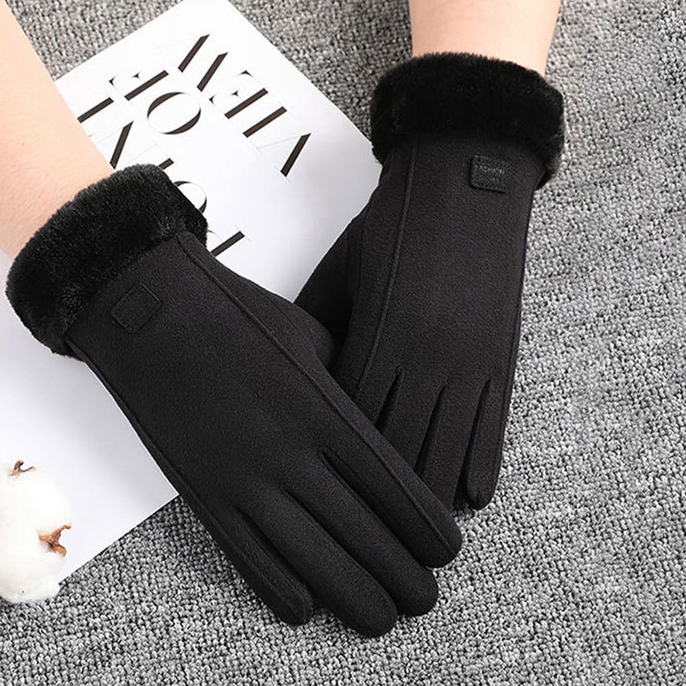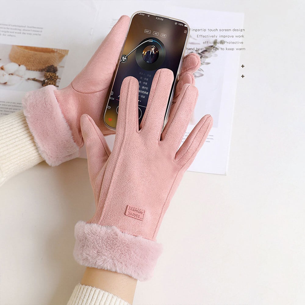 スエード調の素材とふわふわのフェイクファーで、秋冬らしい印象をコーデに与えてくれる五本指タイプの手袋です。