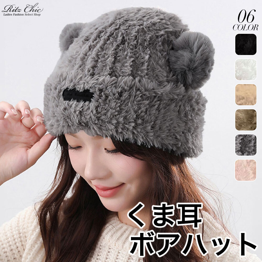 ◇もこもこでふわふわのボアが可愛いくま耳ボアハット。