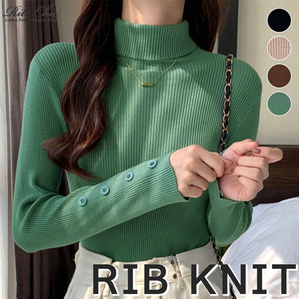 タートルネック リブニット 長袖 レディース 秋冬 韓国 トップス きれいめ 大人 カジュアル シンプル ニット セーター ハイネック リブ編み 大人可愛い 大人女子