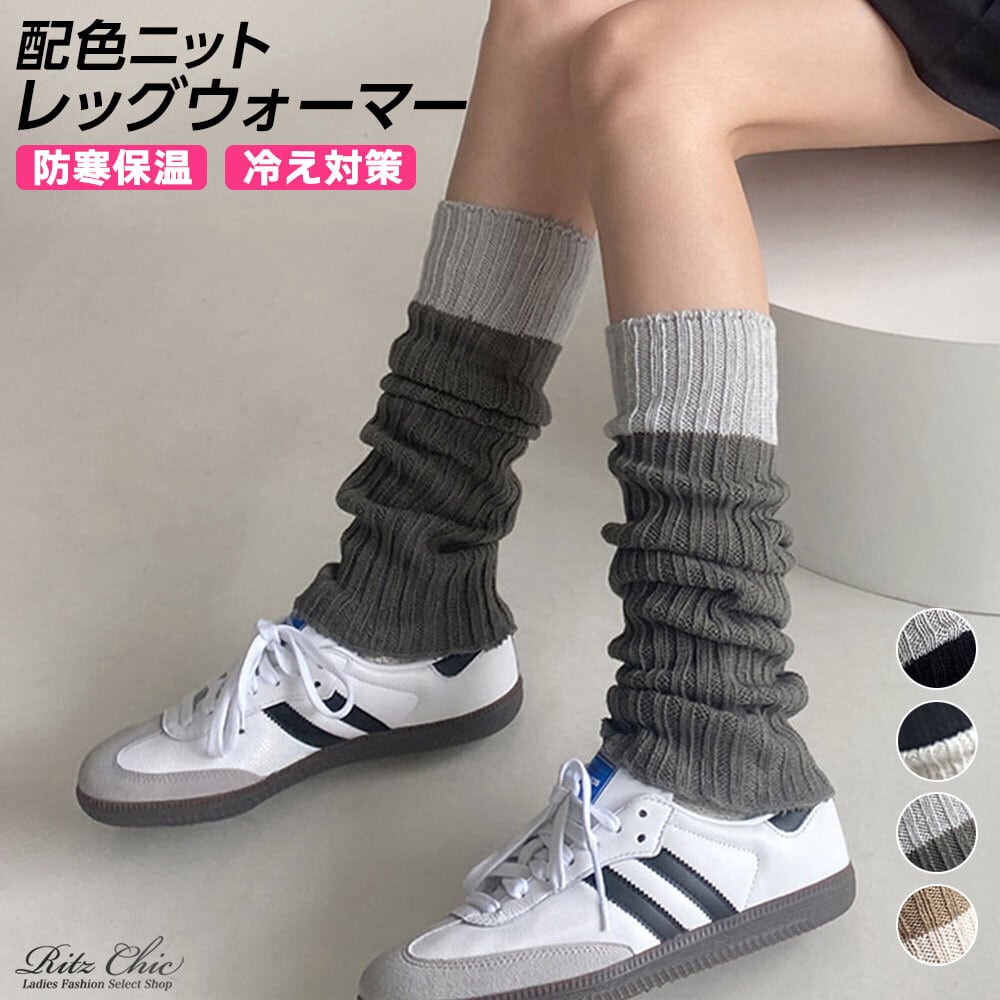 レッグウォーマー 配色 防寒 保温 暖かい レディース 秋冬 韓国 靴下 ソックス おしゃれ きれいめ 大人 カジュアル かわいい ゆったり リブ編み ニットソックス 冷え対策 大人可愛い 大人女子