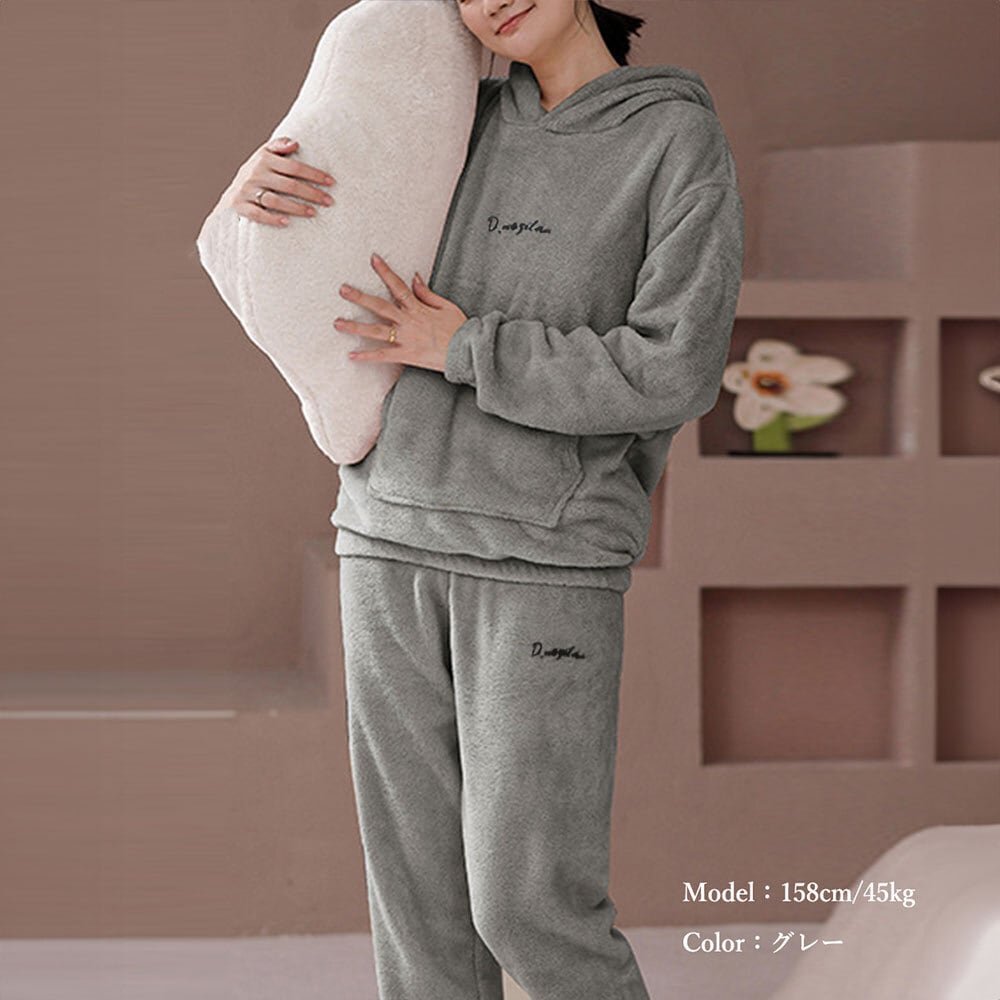 フリース パジャマ セットアップ レディース 秋冬 ルームウェア おしゃれ 暖かい 防寒 保温 大人 かわいい きれいめ パーカー ふわふわ ボア 大人可愛い 大人女子