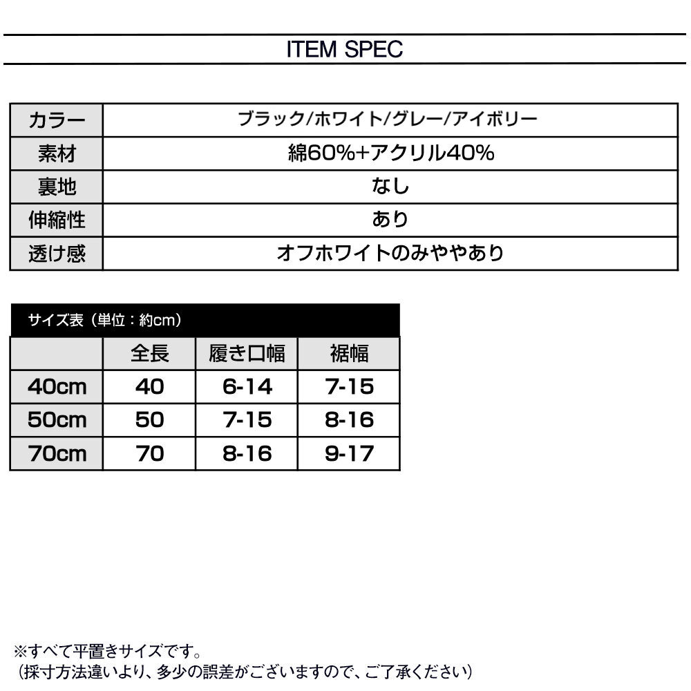 お洒落で可愛いルーズソックス風のデザインになっていて、40cm丈、50cm丈、70cm丈の3種類からお好きな丈感をお選び頂けます。