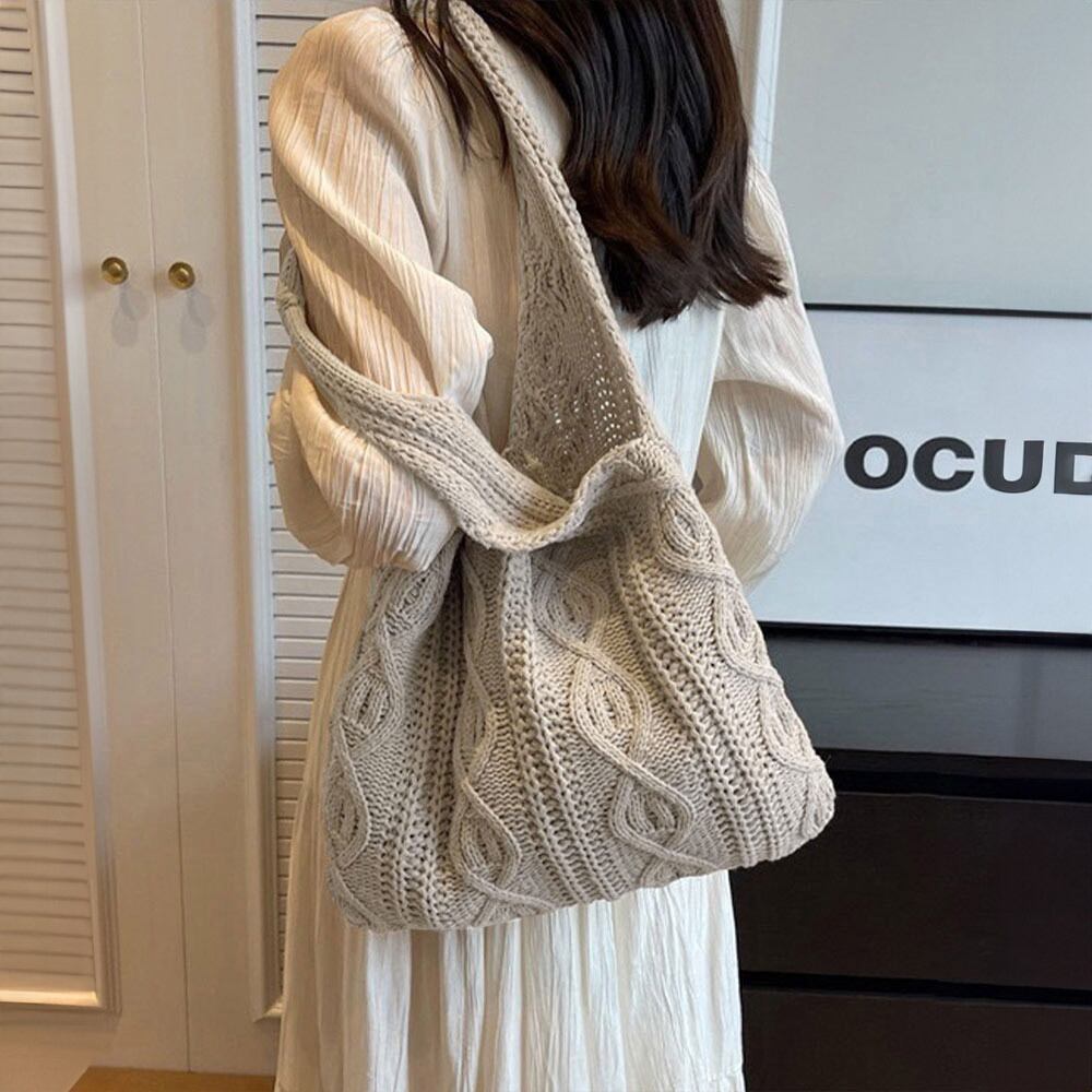 トートバッグ ニット バッグ 肩掛け レディース 韓国 大容量 A4 折りたたみ レトロ おしゃれ シンプル 軽量 ワンショルダー エコバッグ ケーブル編み カジュアル 大人可愛い 大人女子