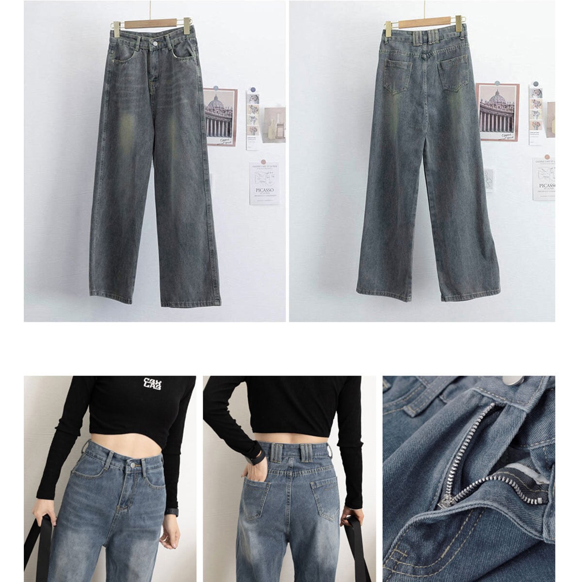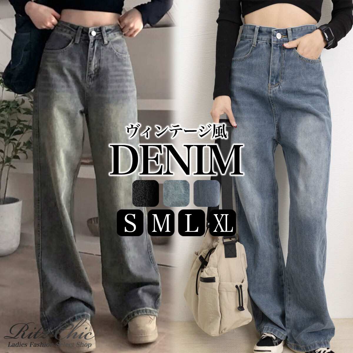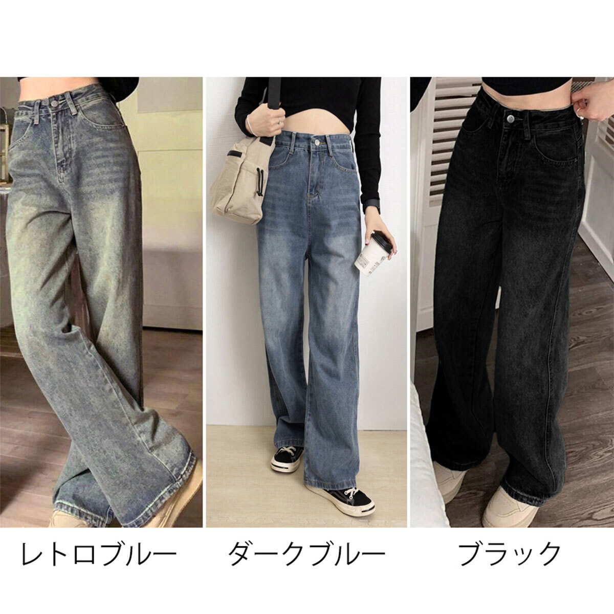 デニムパンツ レディース ヴィンテージ風 ジーンズ 韓国 おしゃれ レトロ カジュアル 大人 かわいい ハイウエスト ウォッシュ加工 大人可愛い 大人女子