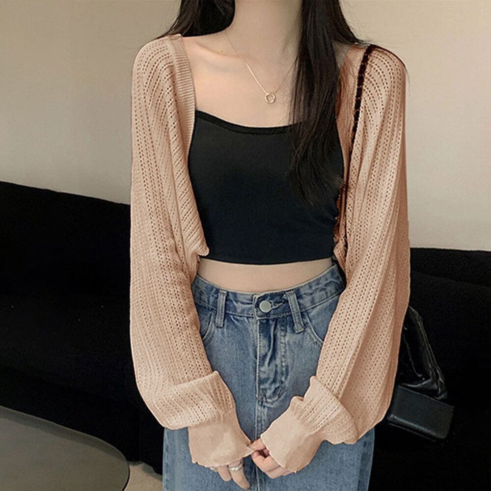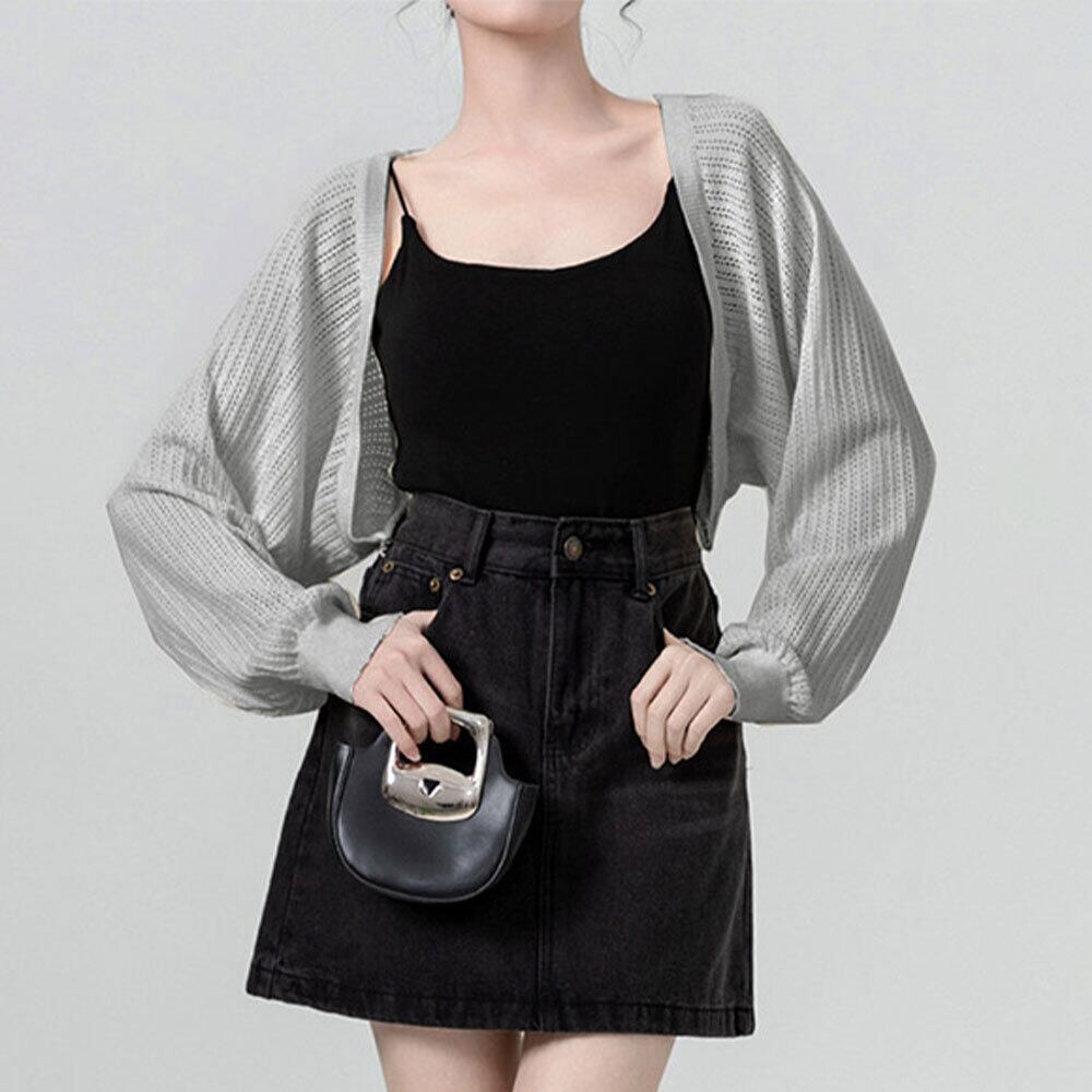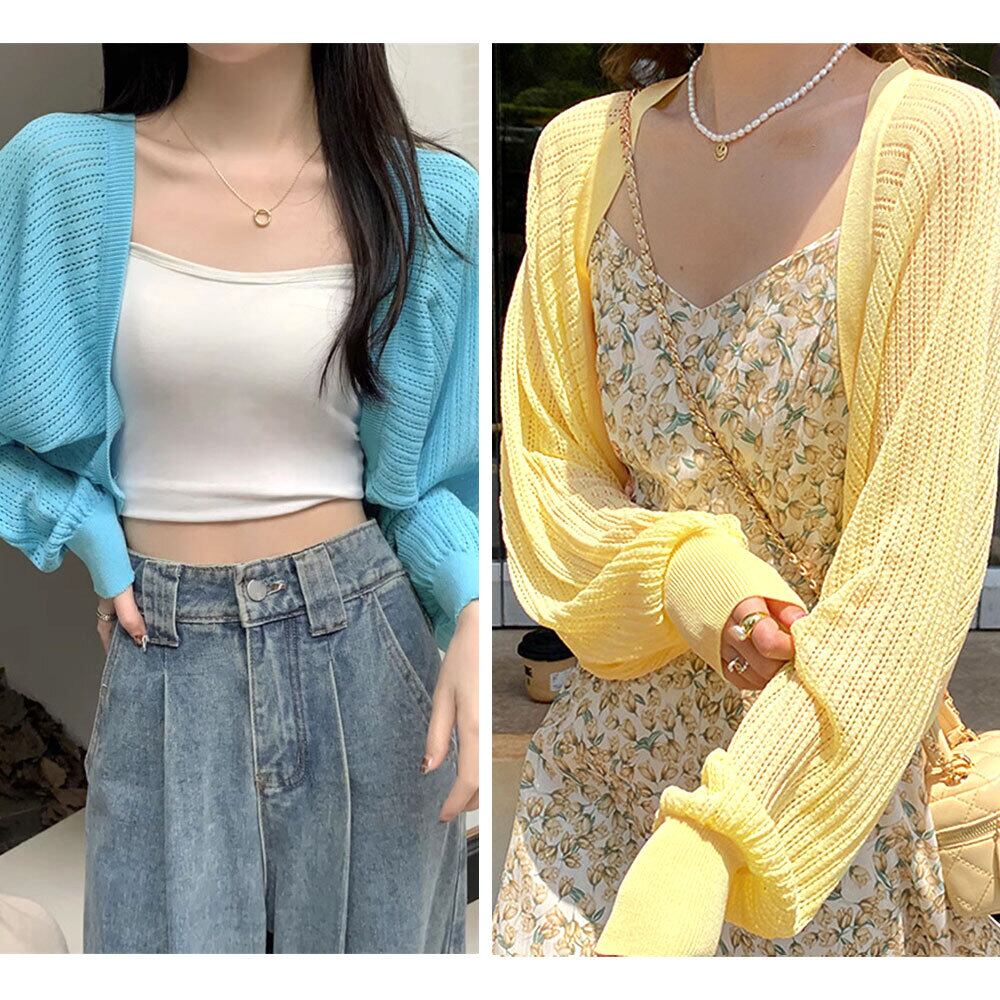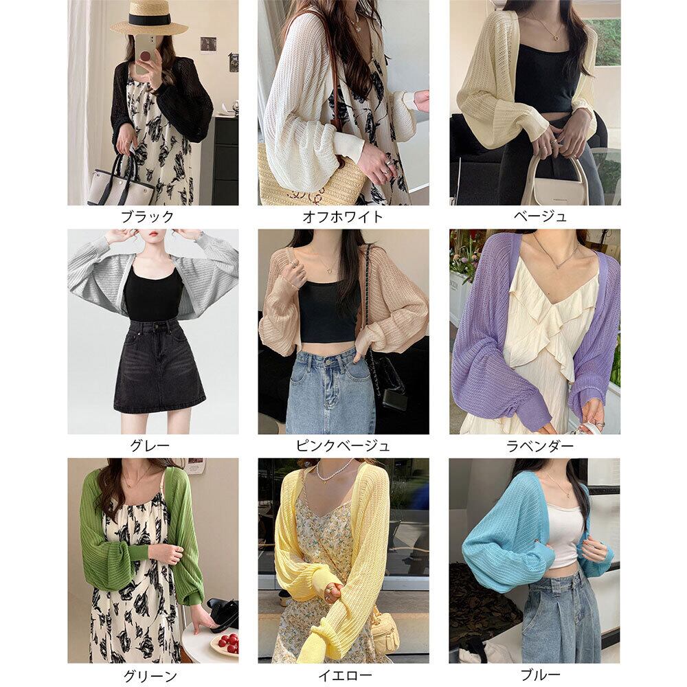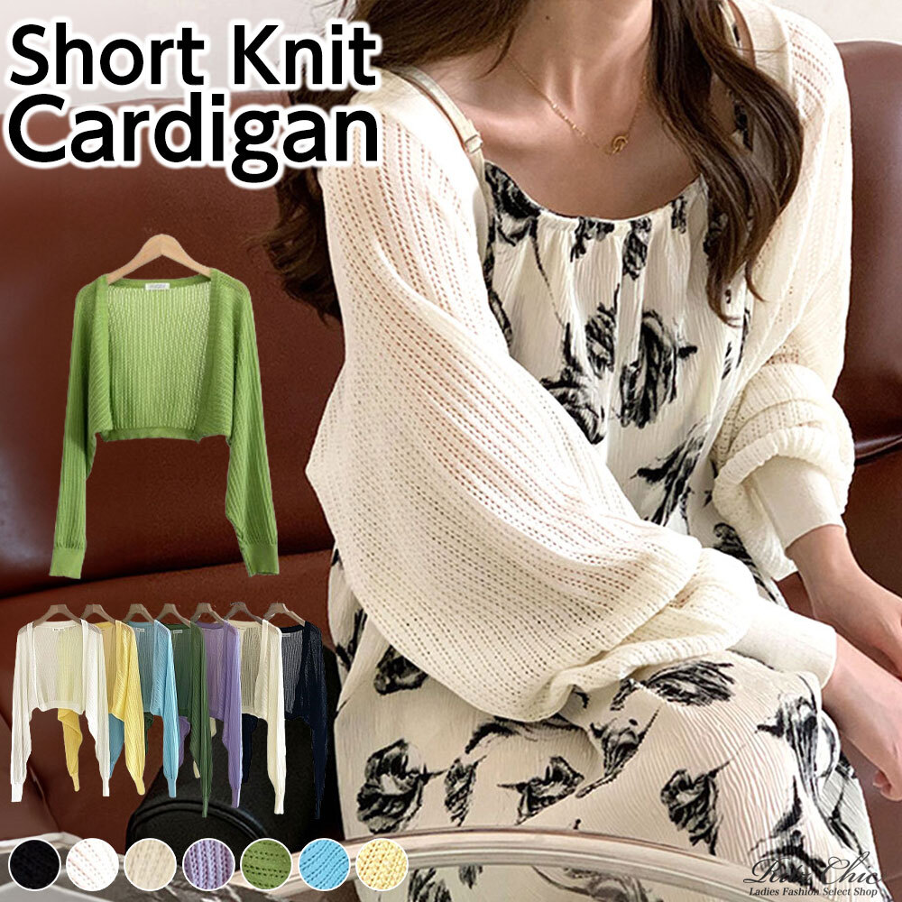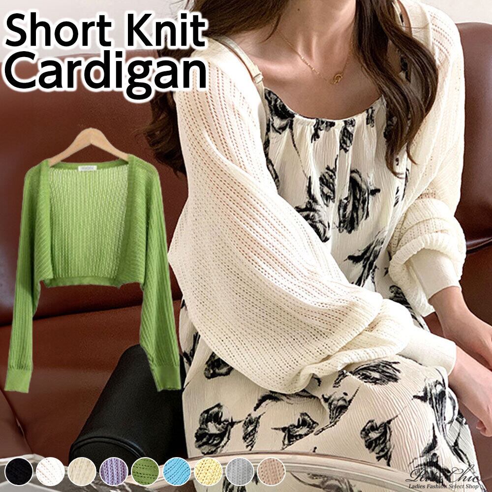 ニット カーディガン レディース 春夏秋 羽織り 韓国 ボレロ おしゃれ きれいめ 大人 かわいい ボリューム袖 日焼け防止 UV対策 ショート丈 サマーカーディガン 大人可愛い 大人女子