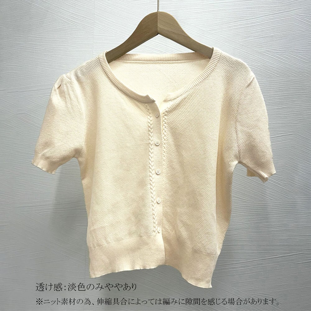 シンプルな無地デザインで着回し力も高く、伸縮性のある薄手のサマーニットで着心地抜群のショートカーディガンです。