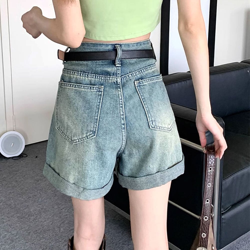 デニム ショートパンツ レディース 春夏 韓国 ハイウエスト デニムパンツ おしゃれ かわいい 大人 カジュアル ジーンズ Aライン 短パン ロールアップ 大人可愛い 大人女子
