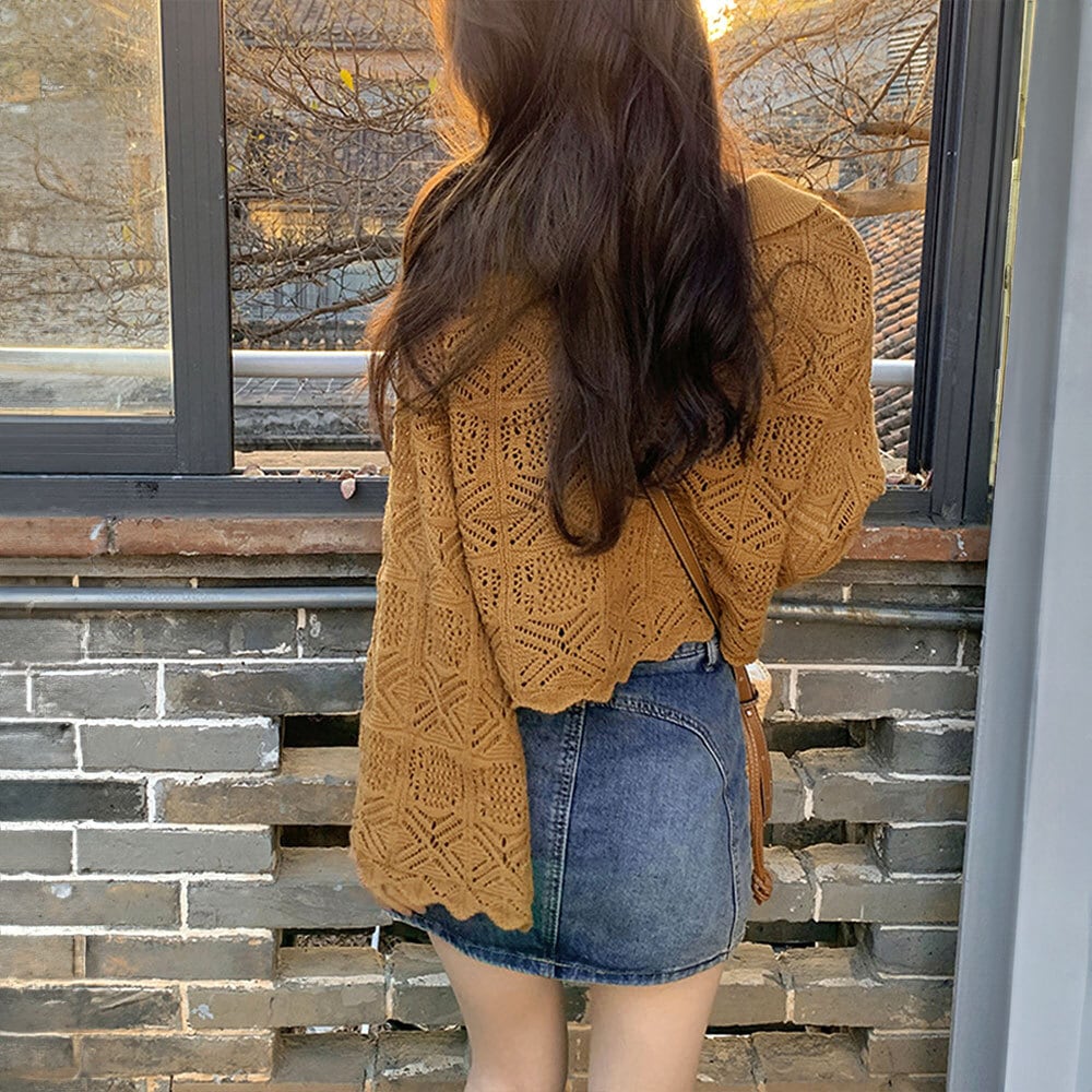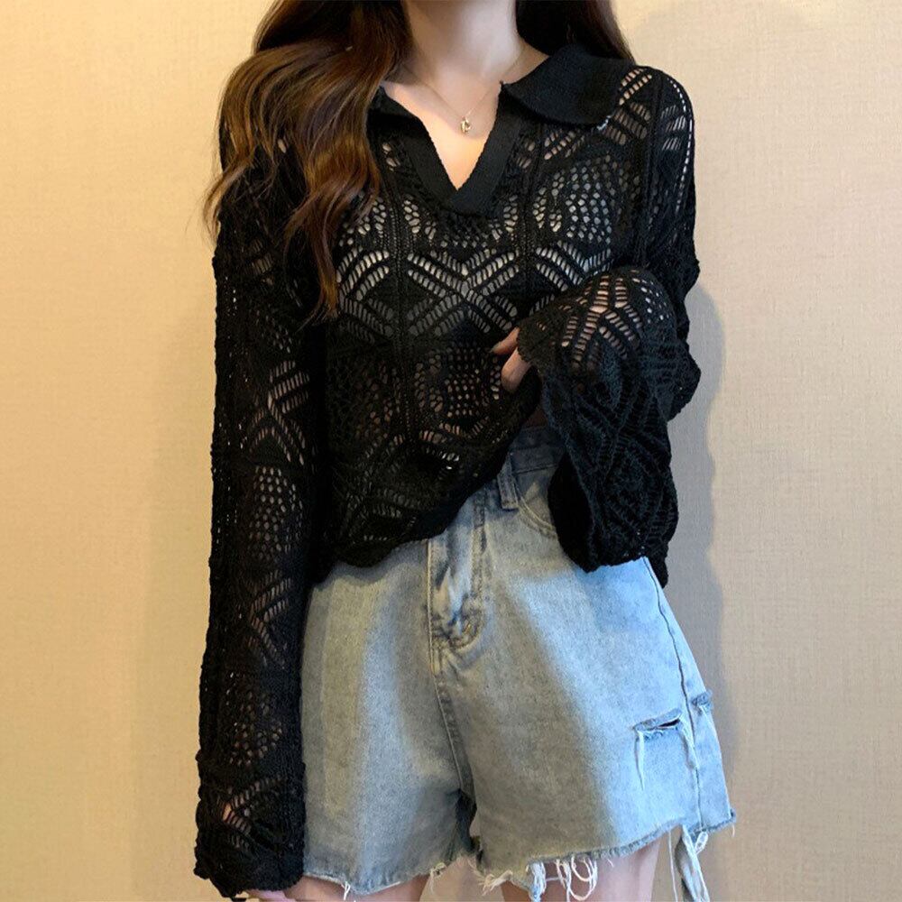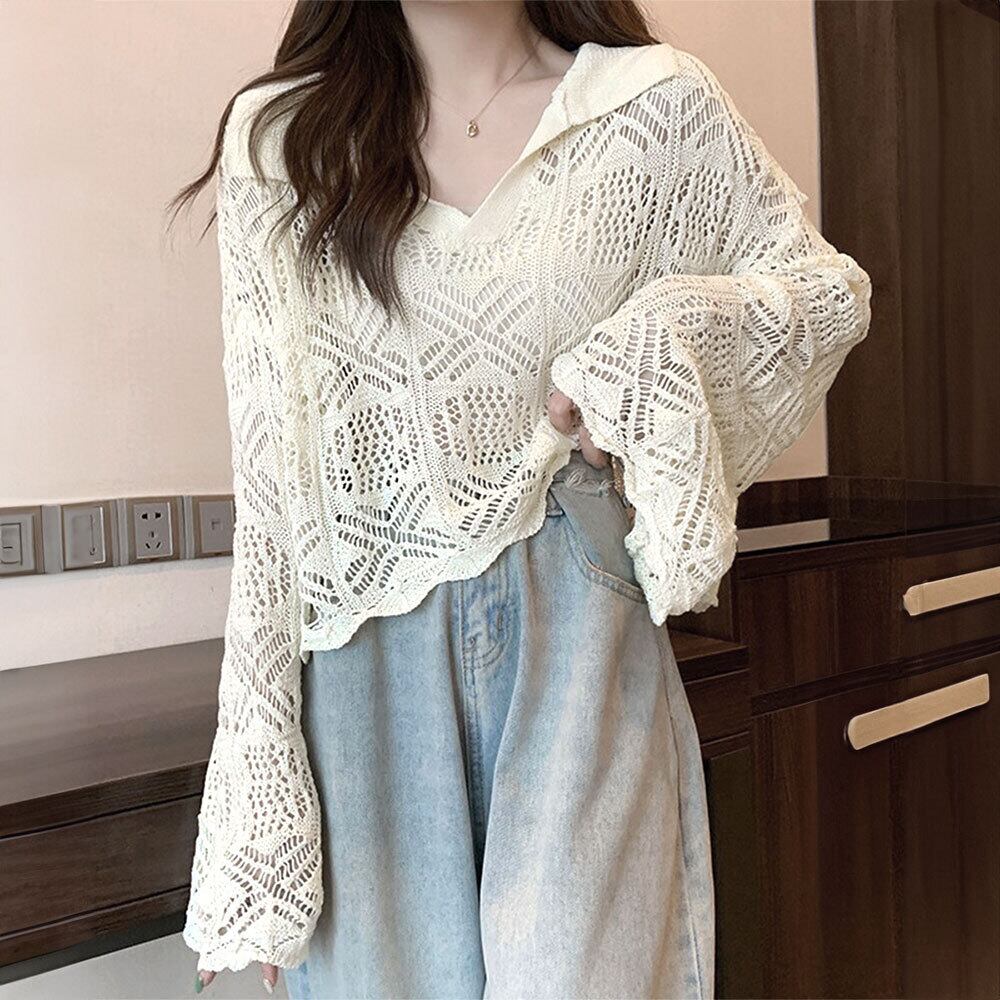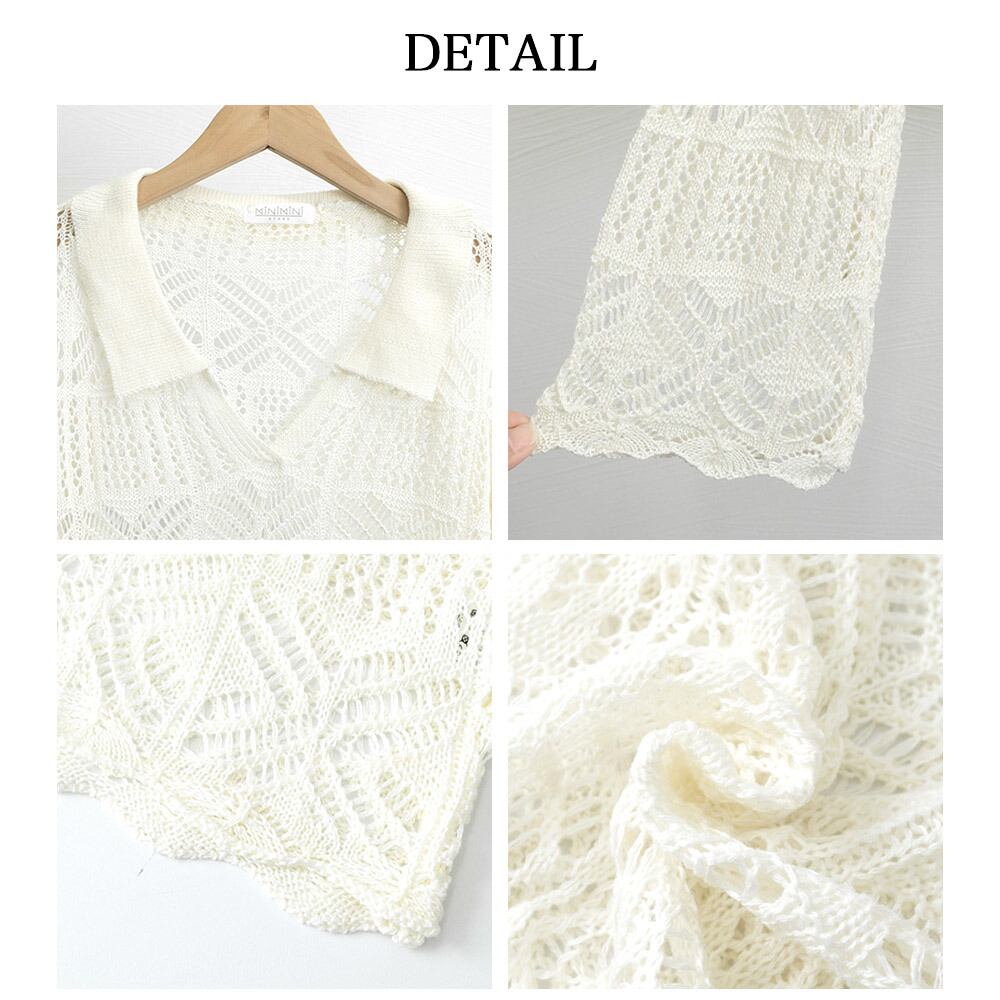 透かし編み ニット レディース 韓国 トップス 春夏秋 重ね着 おしゃれ きれいめ 大人 かわいい カジュアル ゆったり ベルスリーブ 透け感 長袖 大人可愛い 大人女子