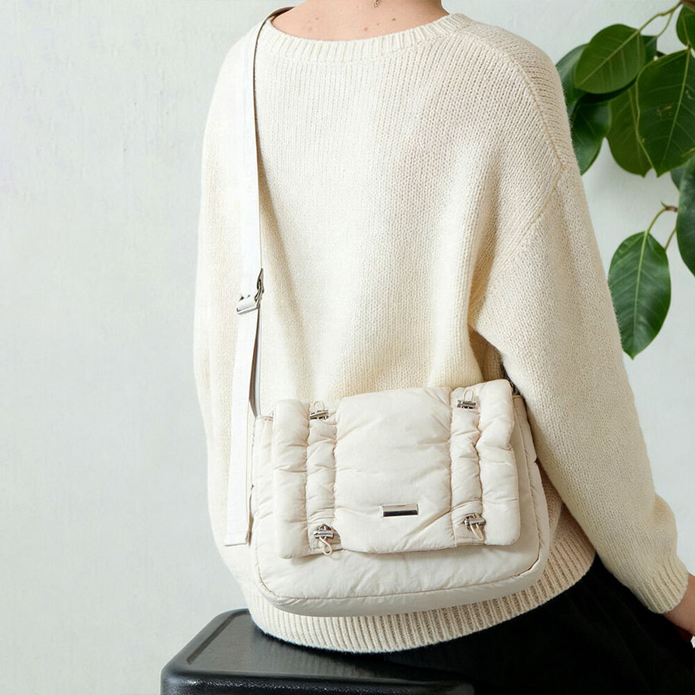 クッションのようなエアリー感が魅力的で、他にはない個性的なデザインがお洒落な印象を引き立たせてくれるショルダーバッグです。
