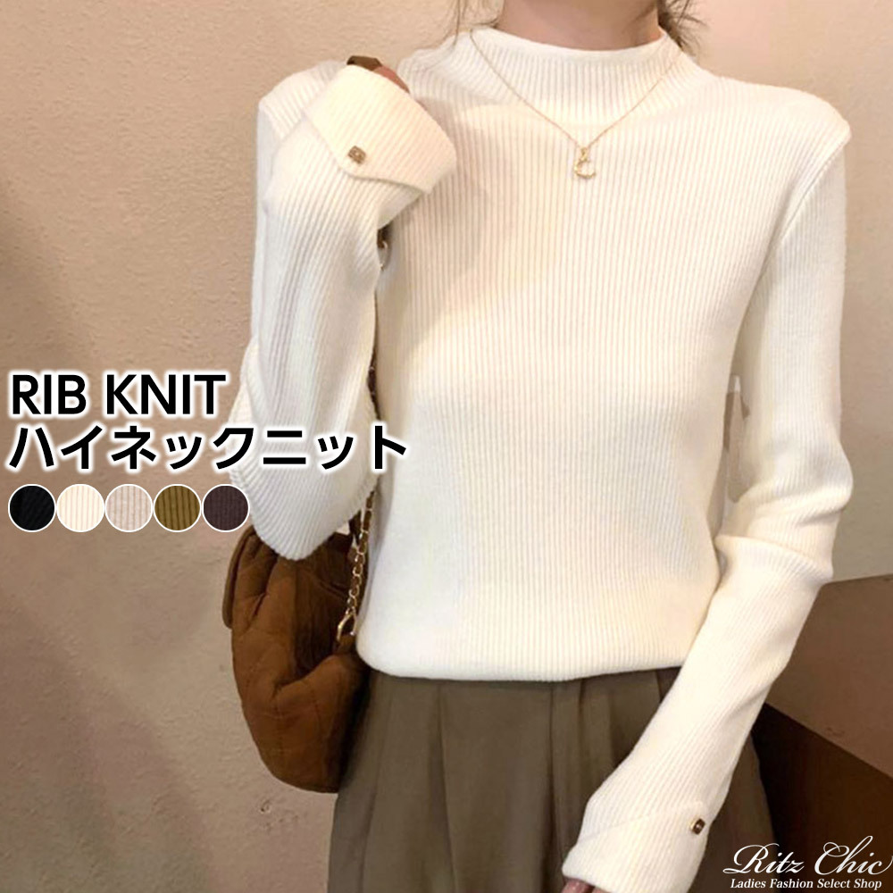 ハイネック リブニット 長袖 レディース 韓国 春秋冬 ニット きれいめ 大人 カジュアル おしゃれ 袖ボタン シンプル 通勤 無地 伸縮性 大人可愛い 大人女子