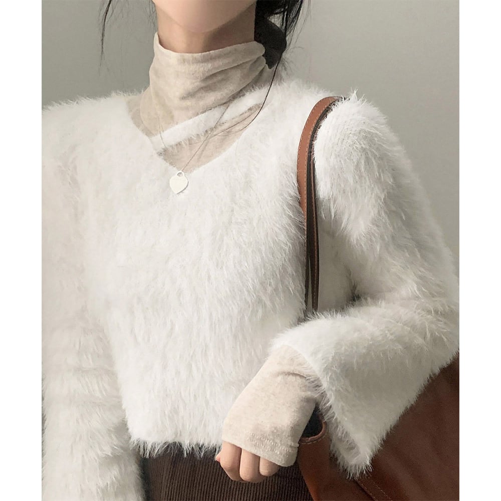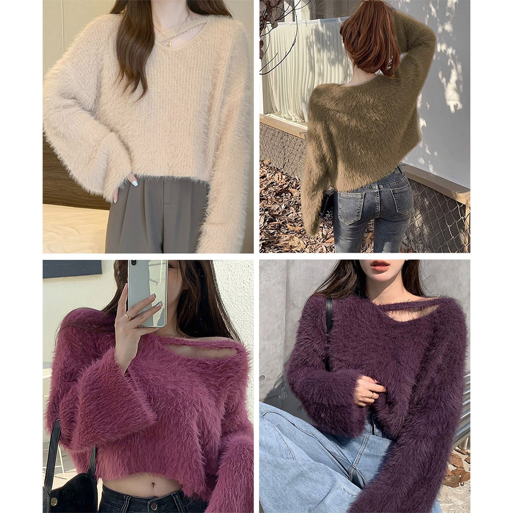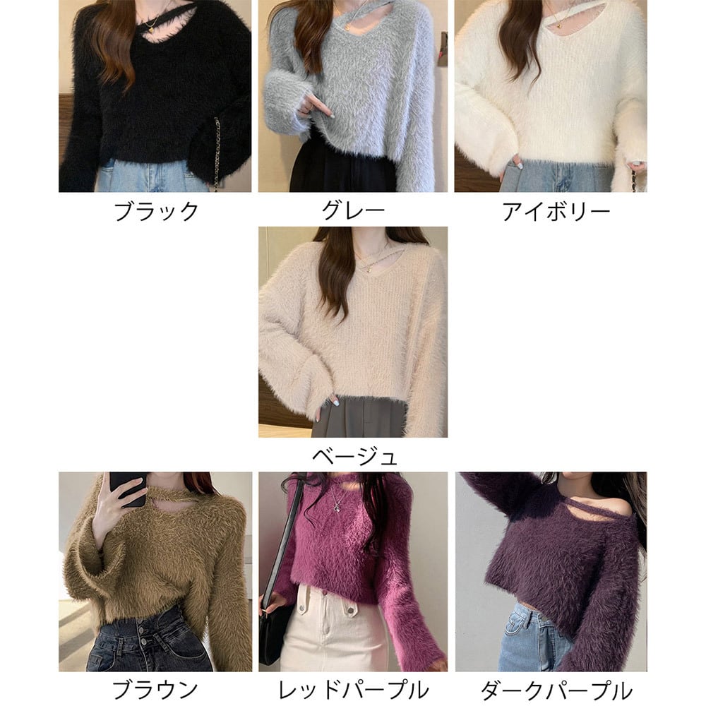 クロップド シャギー ニット トップス レディース 秋冬 韓国 大人 かわいい おしゃれ ふわふわ モヘアニット ショート丈 シャギーセーター きれいめ 大人可愛い 大人女子
