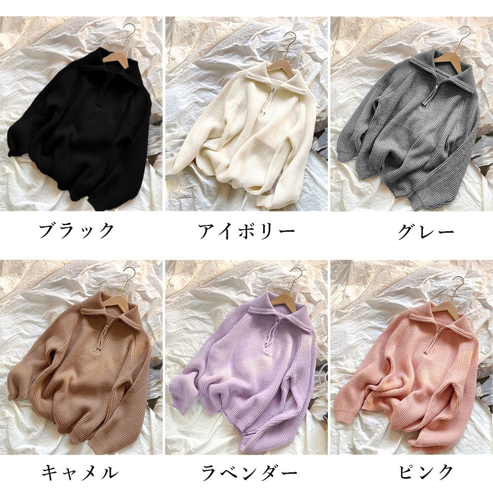 ハーフジップ ニット セーター レディース 秋冬 韓国 長袖 トップス 大人 かわいい きれいめ おしゃれ カジュアル ゆったり ハイネック 体型カバー 大人可愛い 大人女子