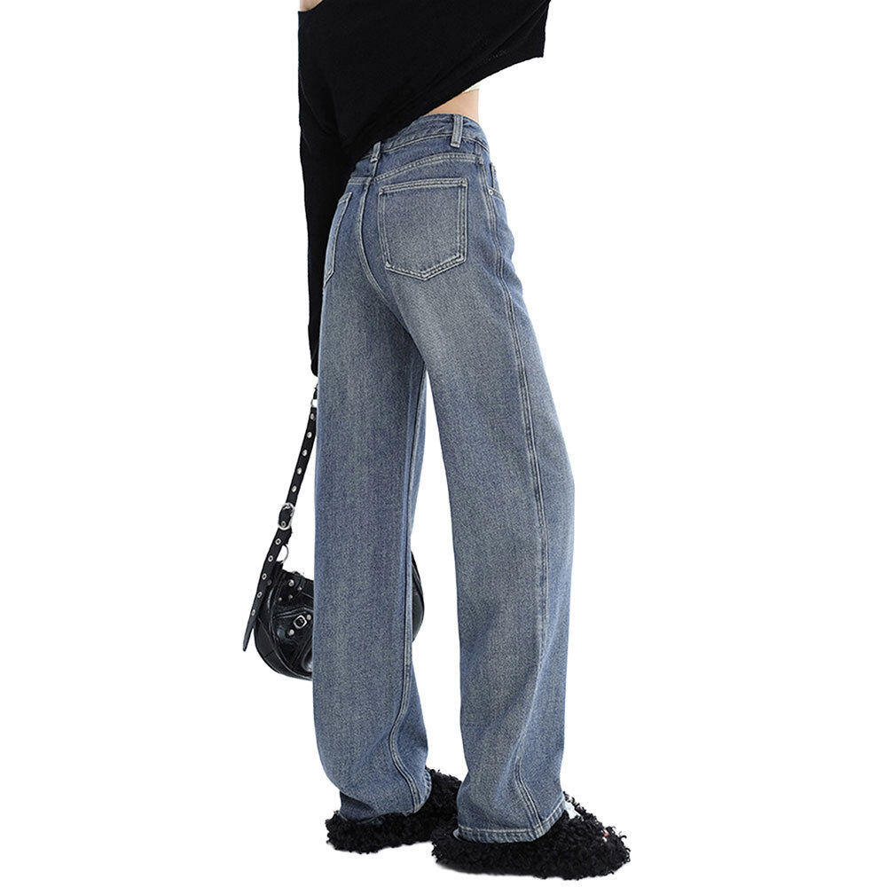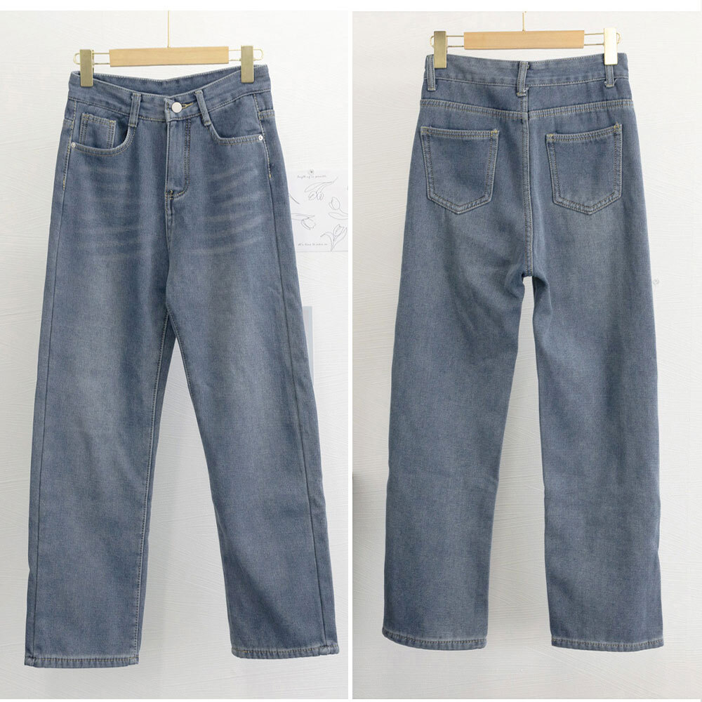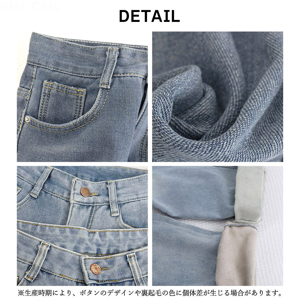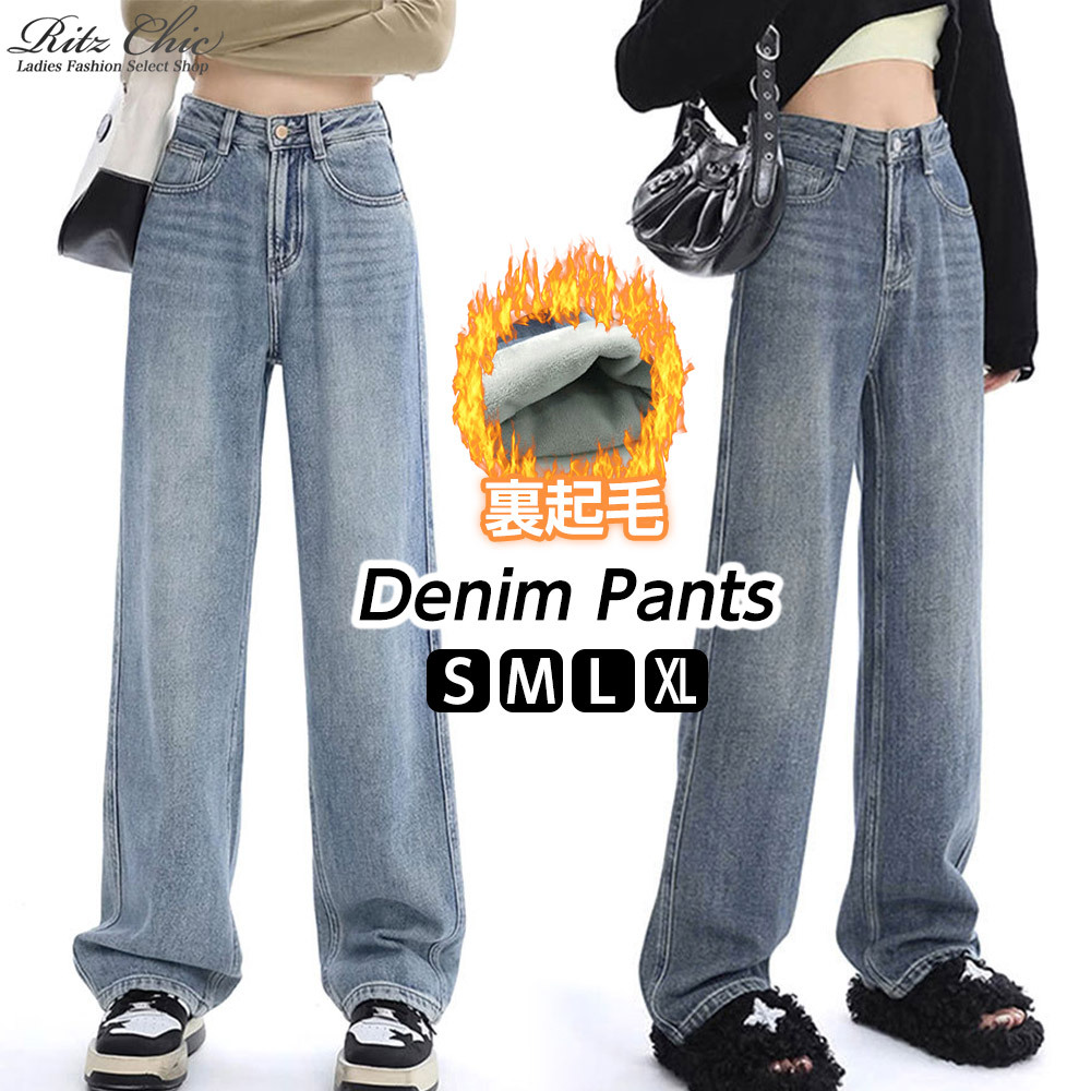 裏起毛 デニム パンツ レディース ストレート ジーンズ 韓国 おしゃれ 大人 カジュアル ストリート 裏ボア ゆったり ハイウエスト 大人可愛い 大人女子