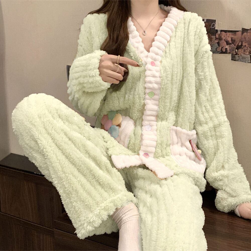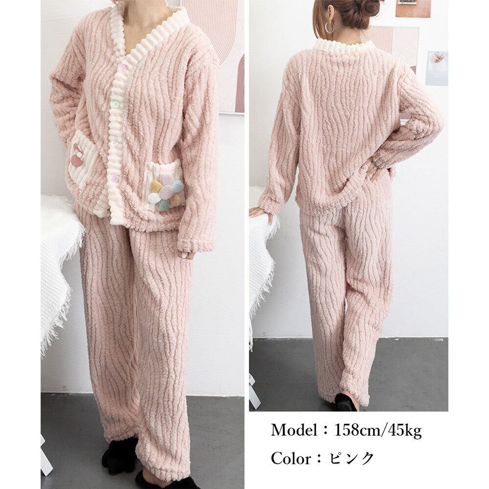 フリース パジャマ レディース セットアップ 韓国 ルームウェア 大人 かわいい 防寒 保温 ふわふわ おしゃれ 上下セット 冷え防止 もこもこ 暖かい 大人可愛い 大人女子