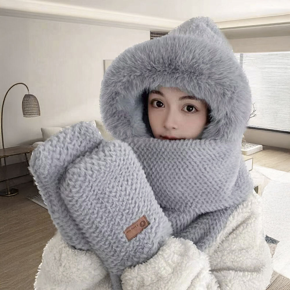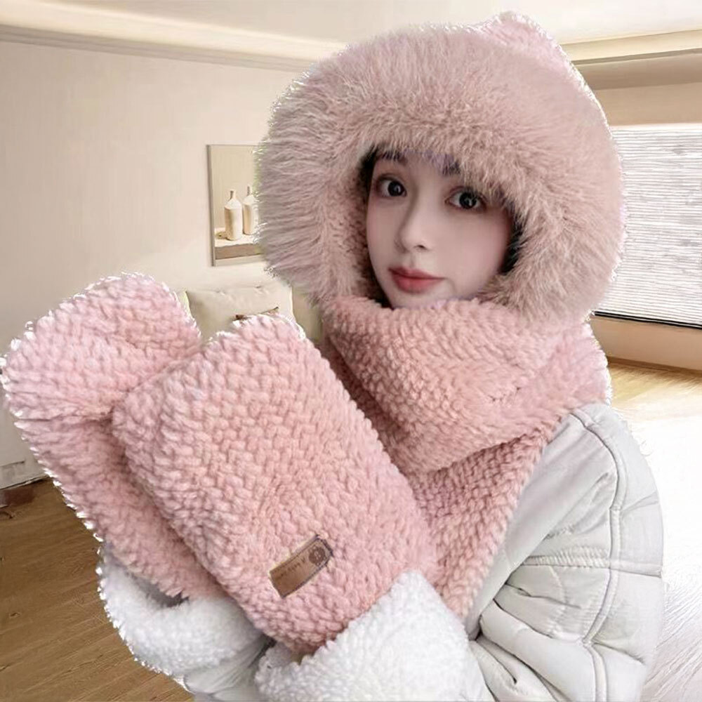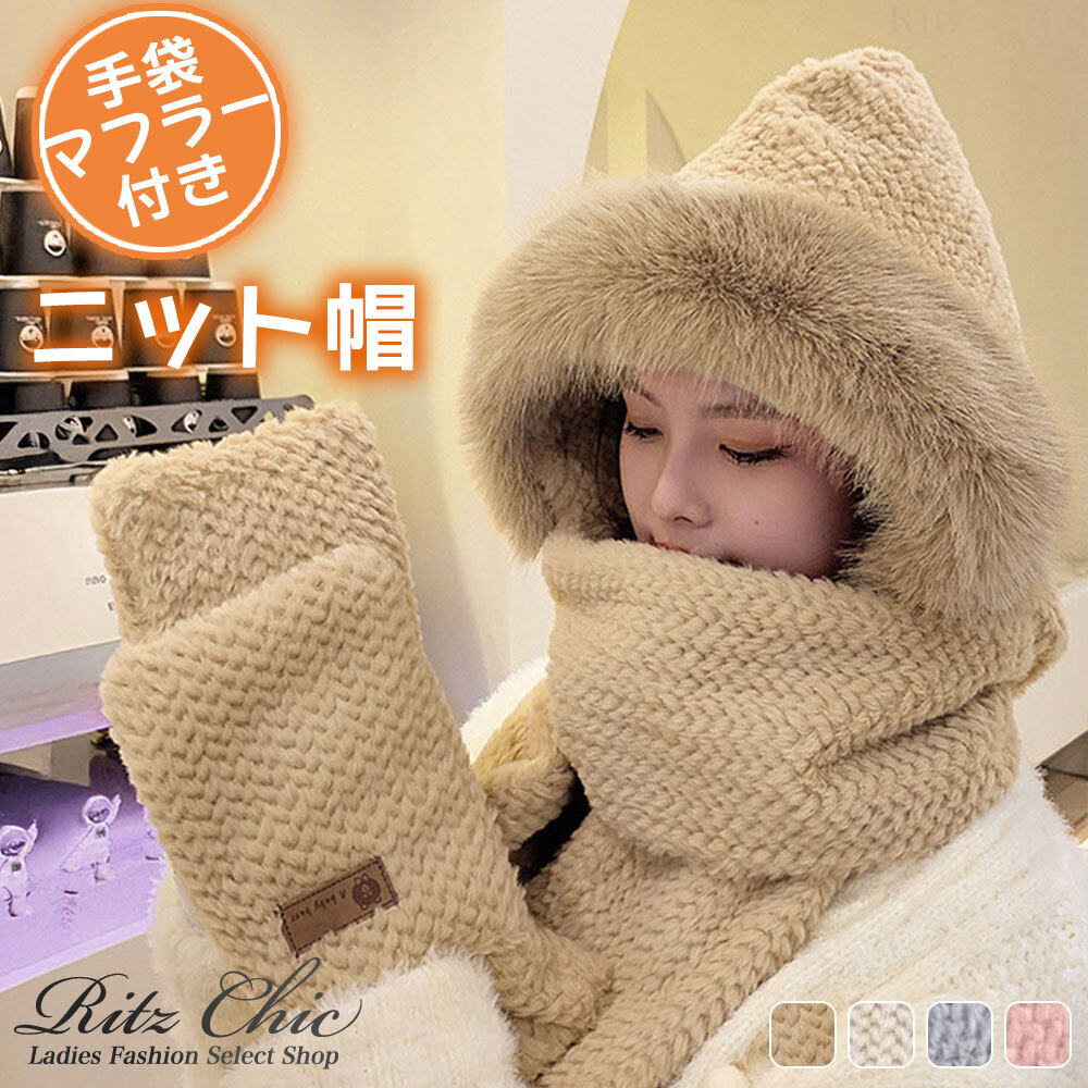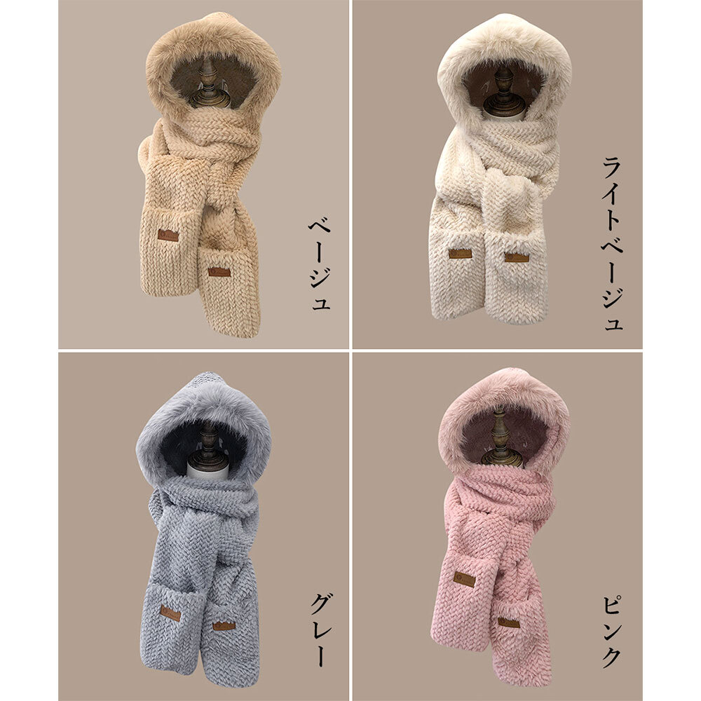 マフラー 手袋 一体型 ニット帽 レディース 秋冬 防寒 保温 韓国 ファーハット おしゃれ 大人 かわいい きれいめ 暖かい エンボス加工 もこもこ ふわふわ 大人可愛い 大人女子