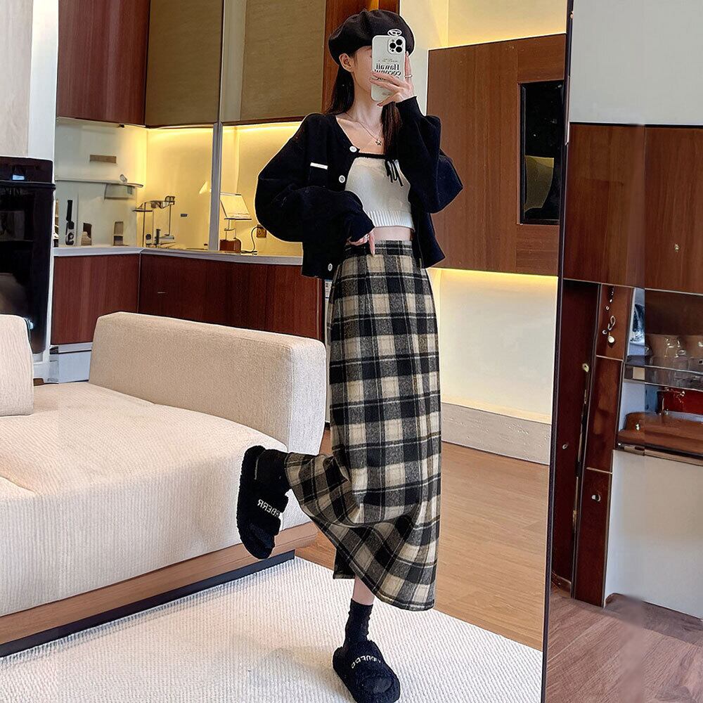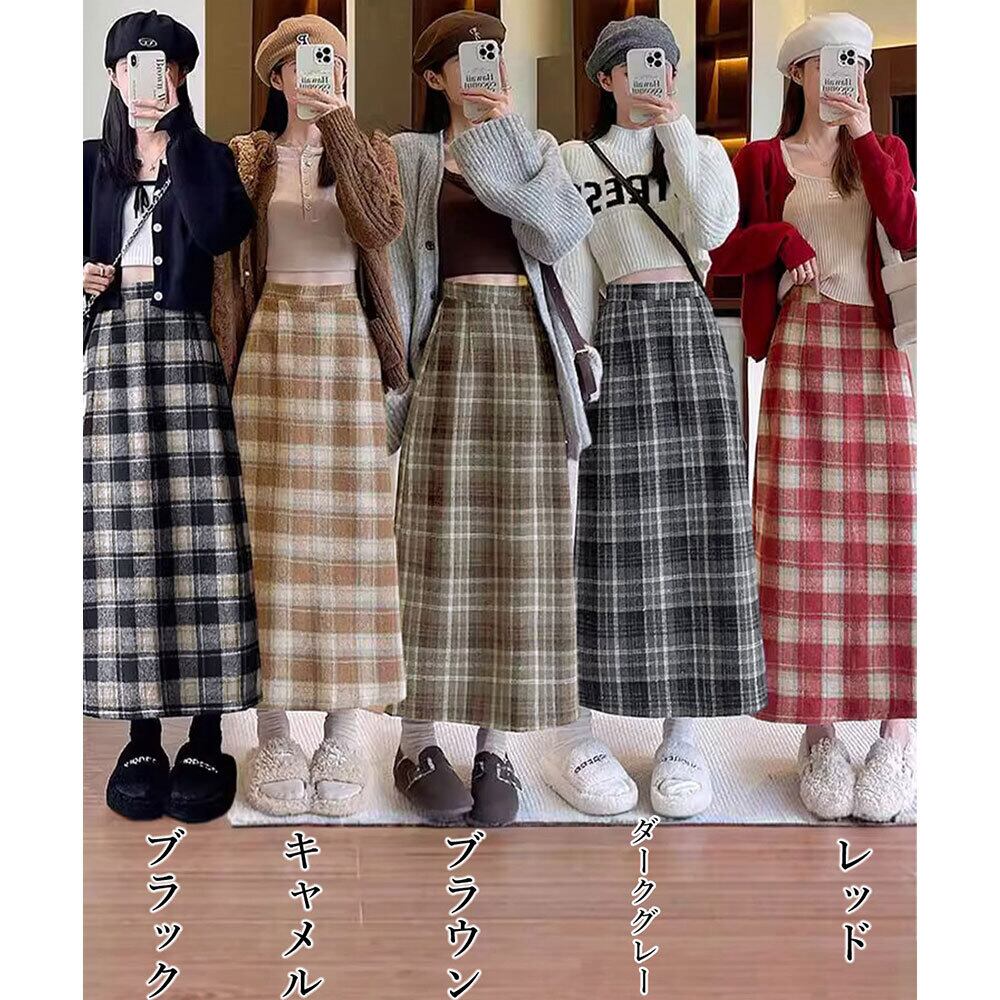 チェック柄 タイトスカート レディース 秋冬 ロングスカート 韓国 レトロ おしゃれ 大人 かわいい きれいめ バックスリット Aライン ハイウエスト 体型カバー 大人可愛い 大人女子