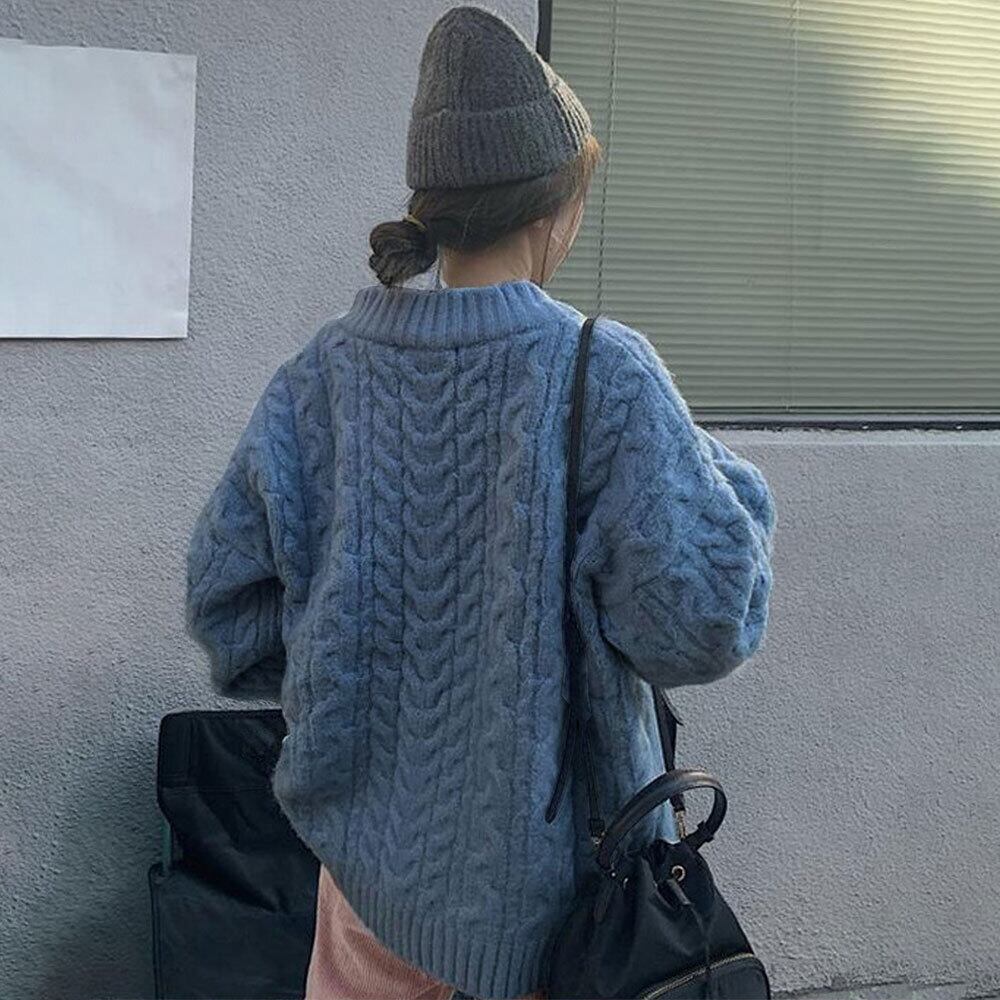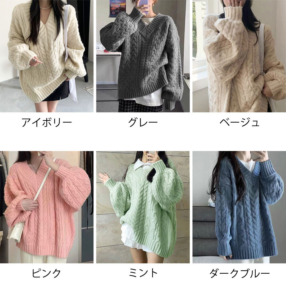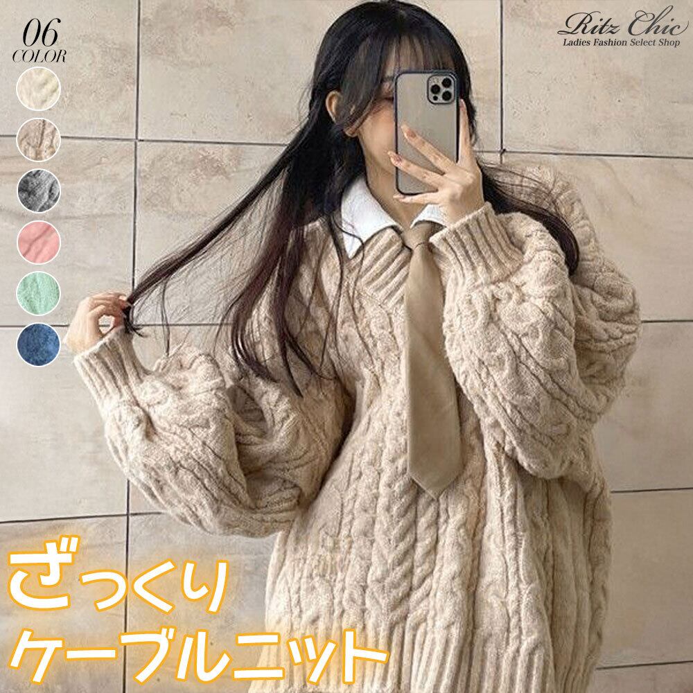 ケーブル編み ニット セーター レディース 秋冬 韓国 大人 かわいい おしゃれ 暖かい ふわふわ ゆったり Vネック 長袖 ドロップショルダー 大人可愛い 大人女子