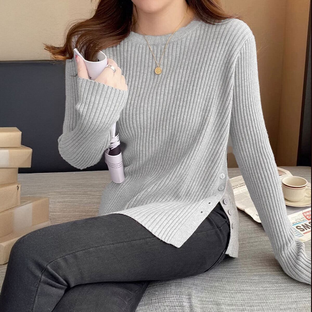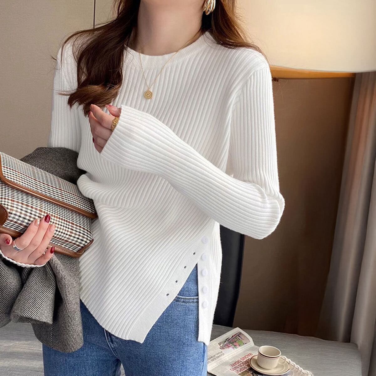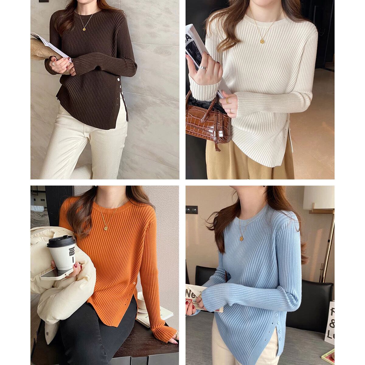 スリット ニット レディース 春秋冬 韓国 おしゃれ 大人 シンプル かわいい きれいめ サイドボタン カジュアル リブニット 長袖 薄手 大人可愛い 大人女子