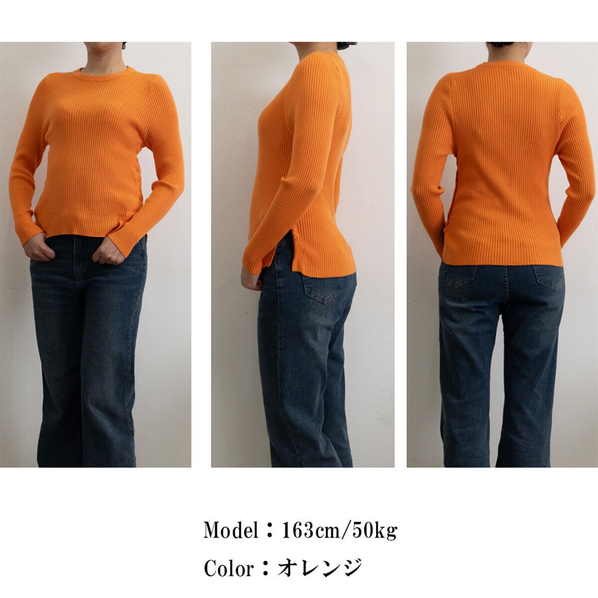 ◇伸縮性のある柔らかいリブニット素材の長袖セーター。