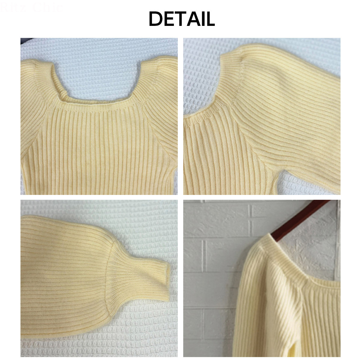 リブニット ワンピース 長袖 レディース 韓国 きれいめ おしゃれ 大人 かわいい ミニワンピース ゆったり スクエアネック パフスリーブ 大人可愛い 大人女子