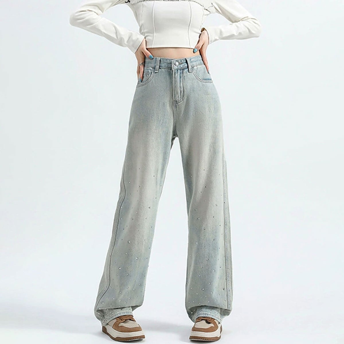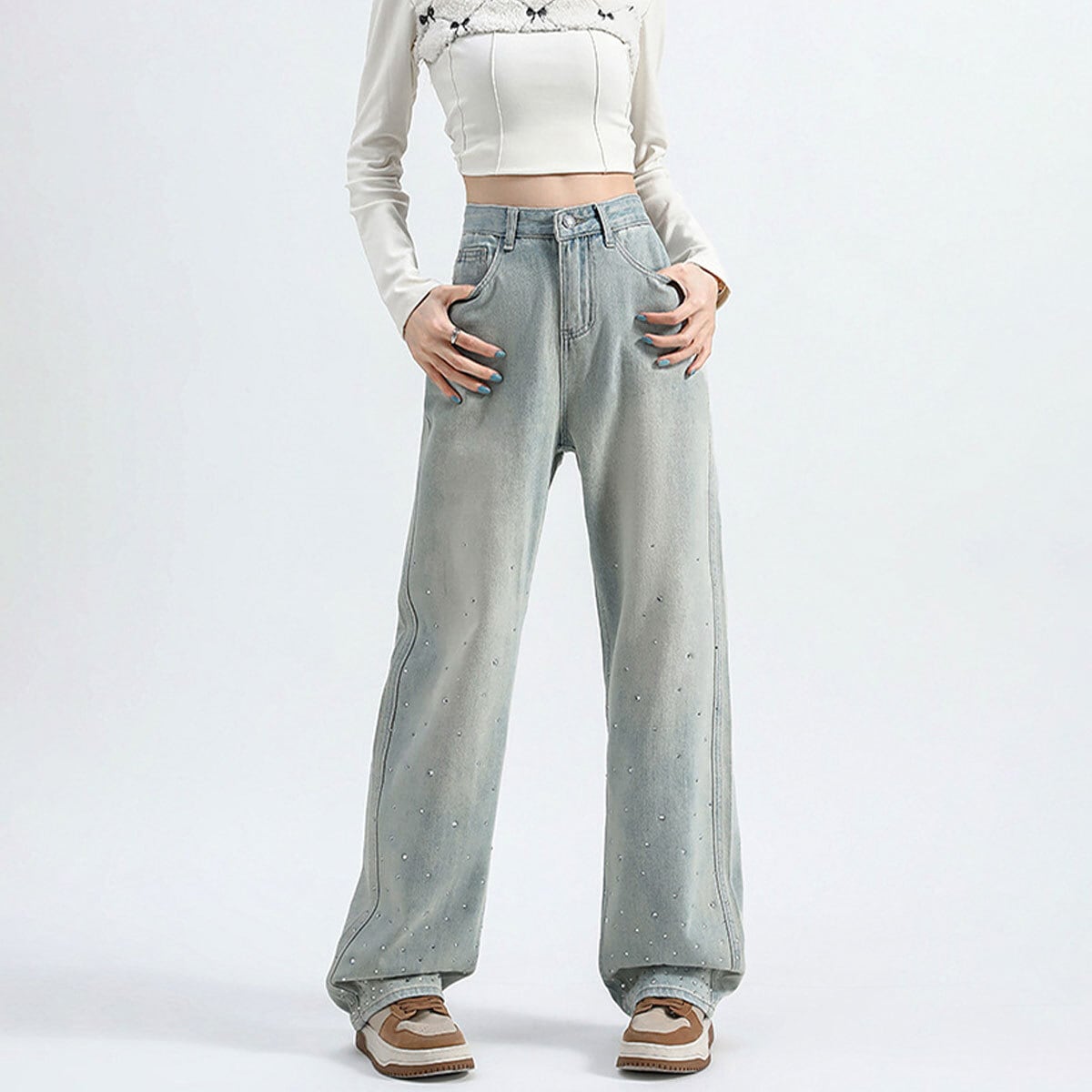 ラインストーン デニム パンツ レディース 韓国 ジーンズ 大人 おしゃれ キラキラ ストリート 原宿系 アメカジ カジュアル ハイウエスト ゆったり 大人可愛い 大人女子