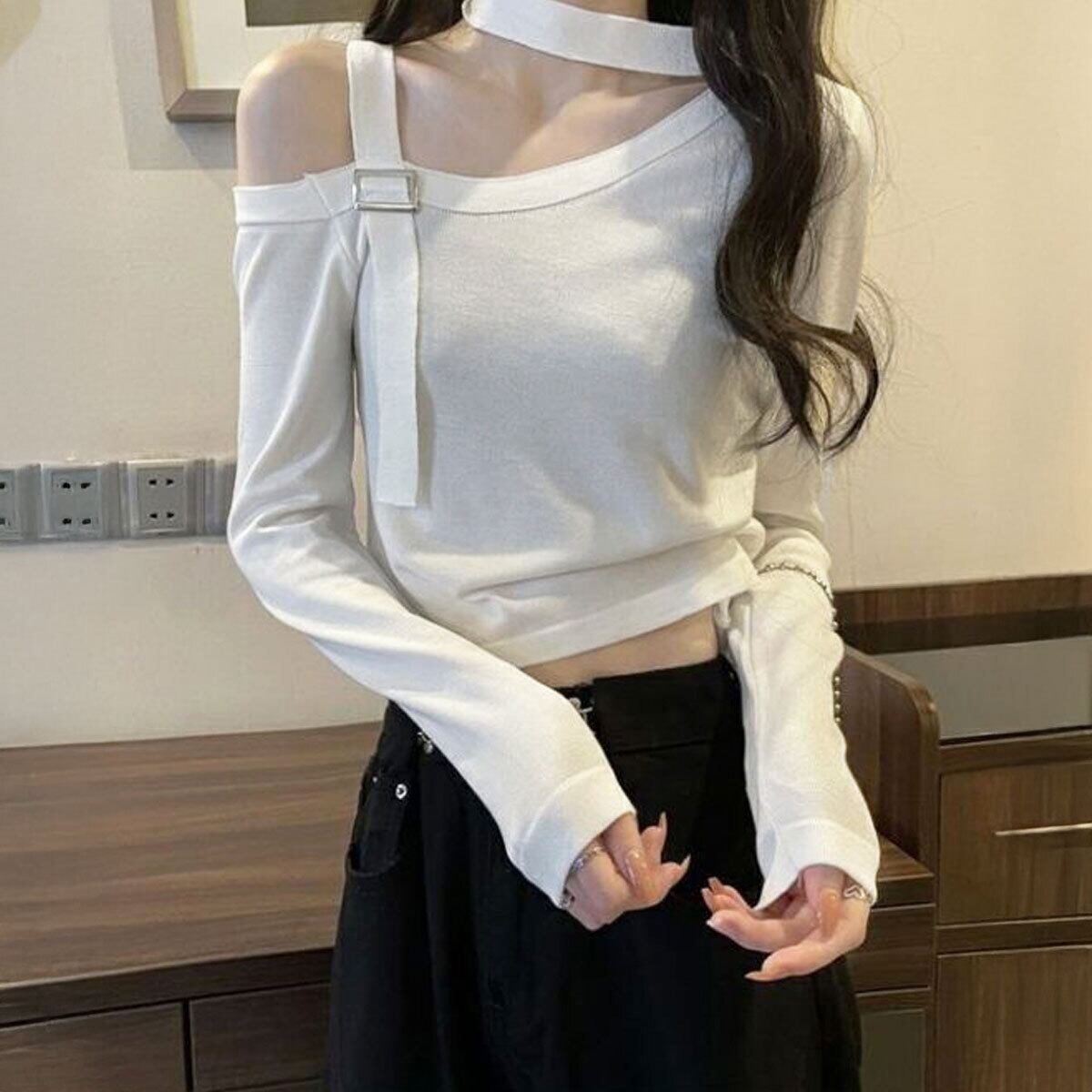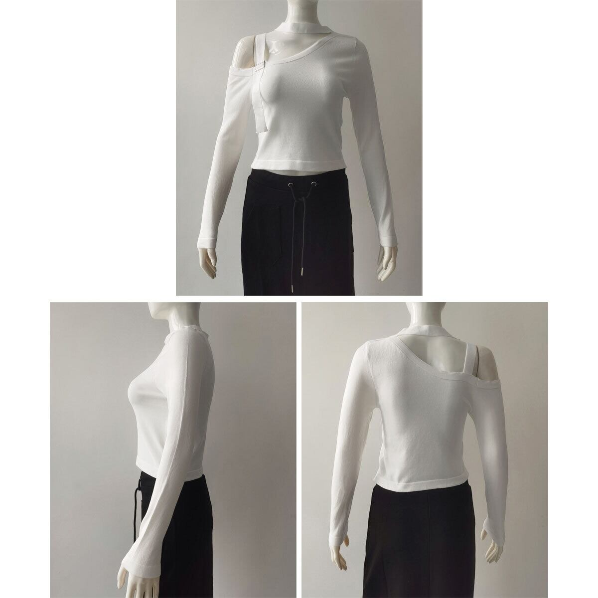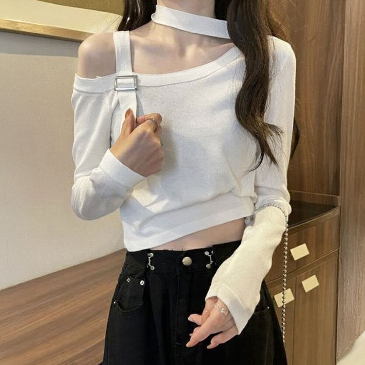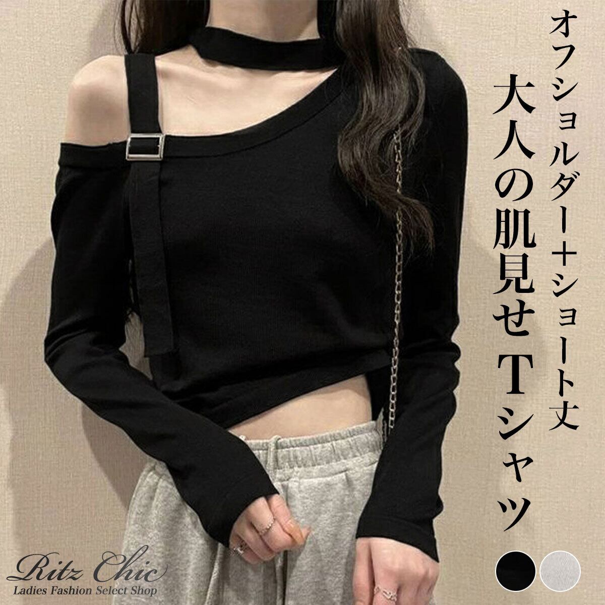 肩出し Tシャツ ショート丈 レディース 春夏秋 韓国 チョーカー風 肌見せ ストリート 原宿系 大人 カジュアル おしゃれ 大人可愛い 大人女子